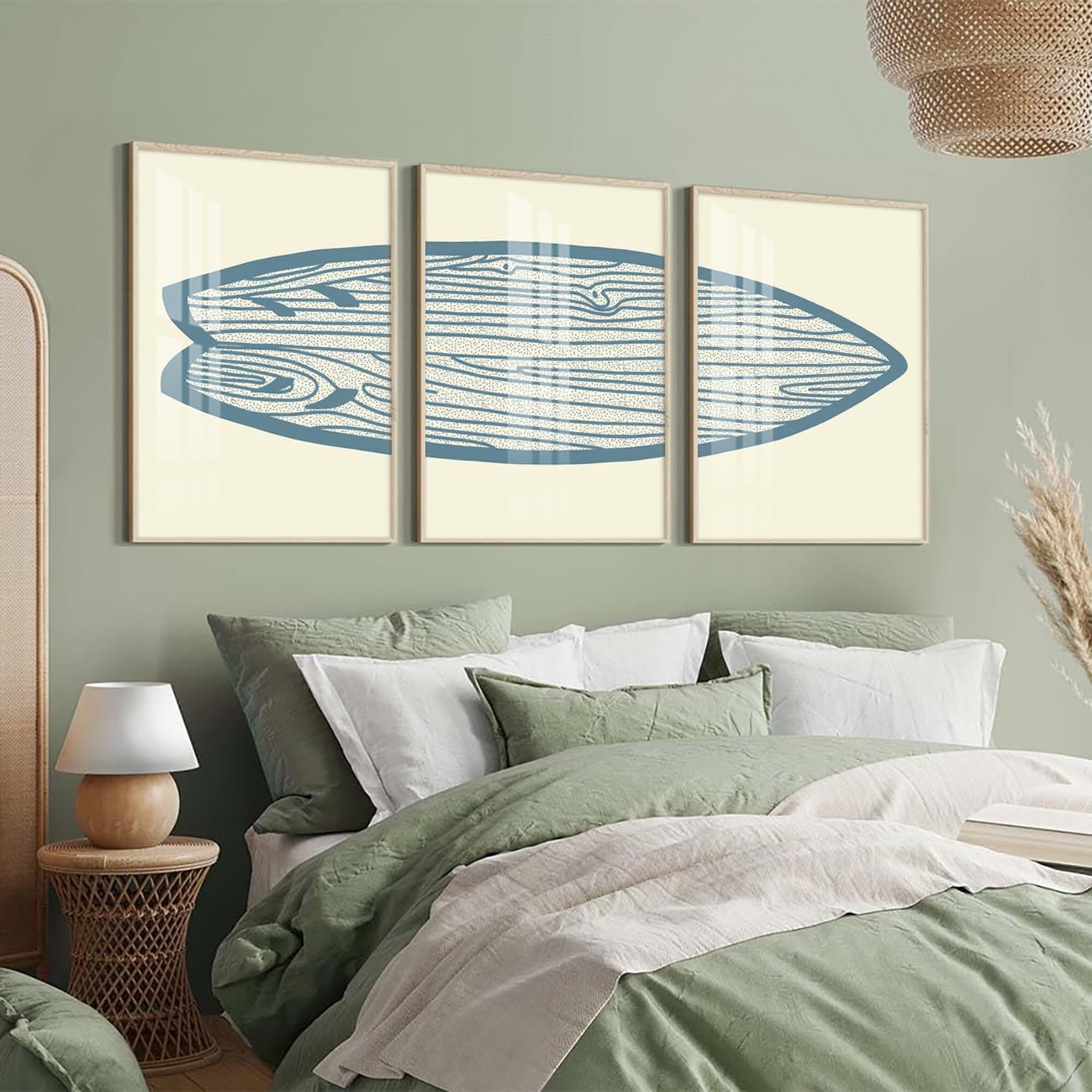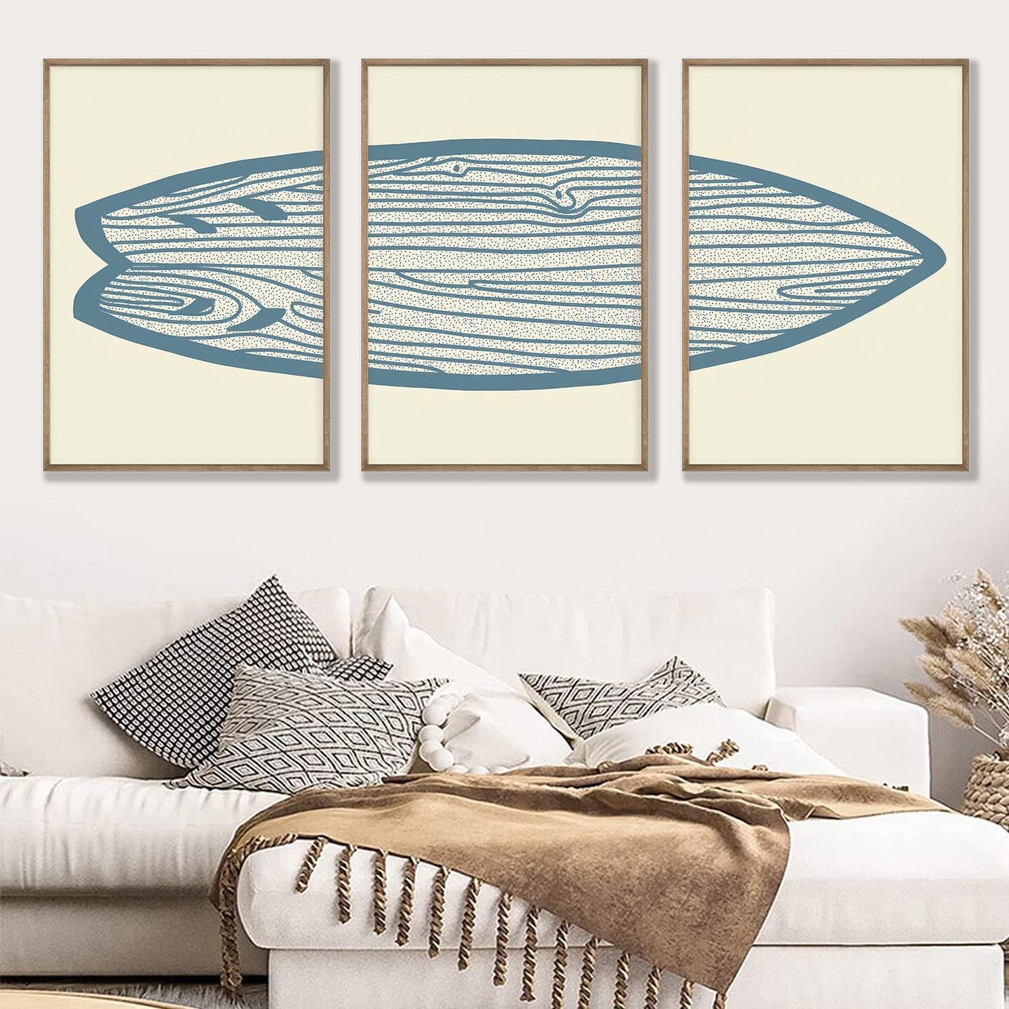 Surfboard Wall Decor 3 Pieces Blue Watercolor Line Surfboard Canvas Painting Prints Wall Art Poster Sea and Surf Pictures for Beach House Living Room Bedroom Decor 12x16 inch No Frame
