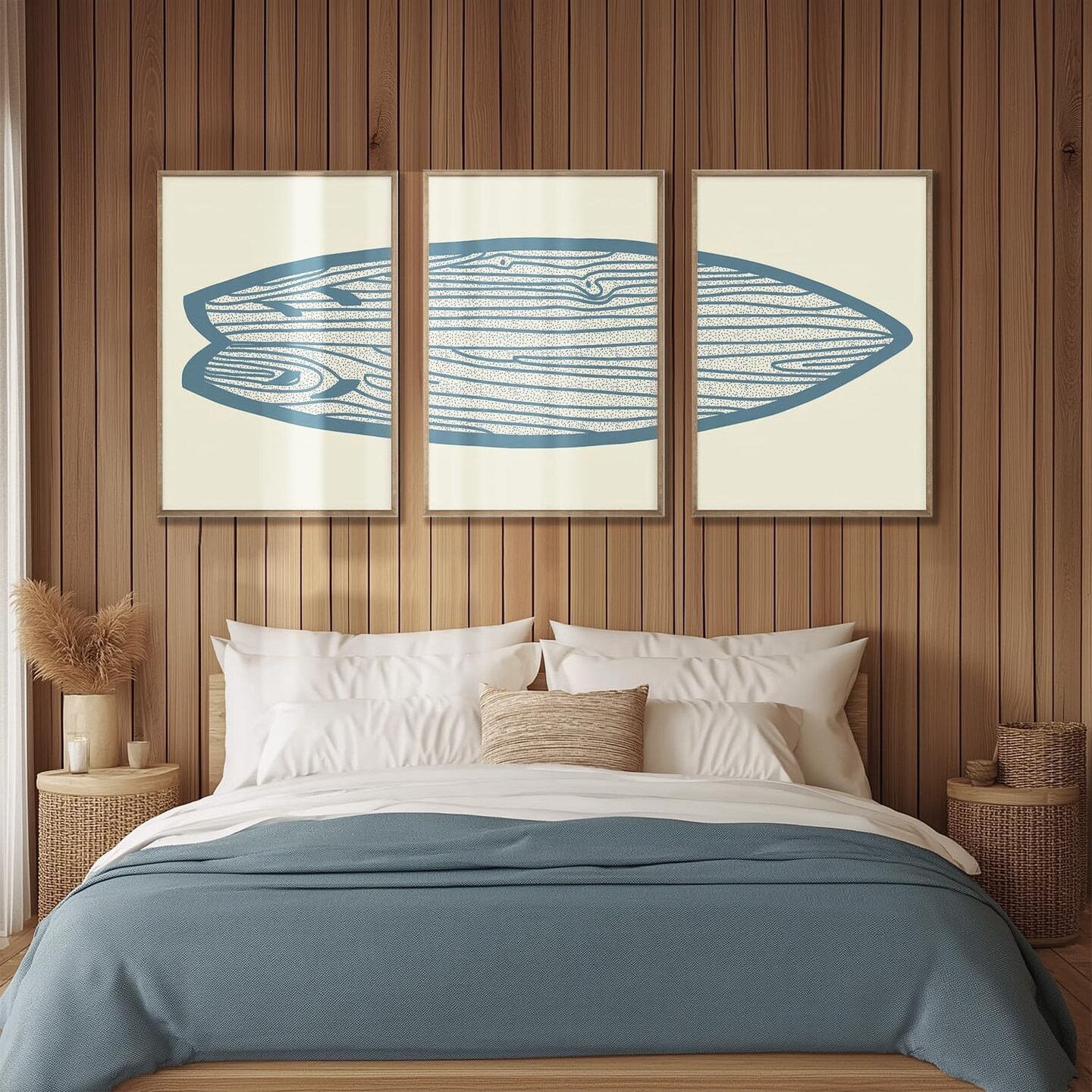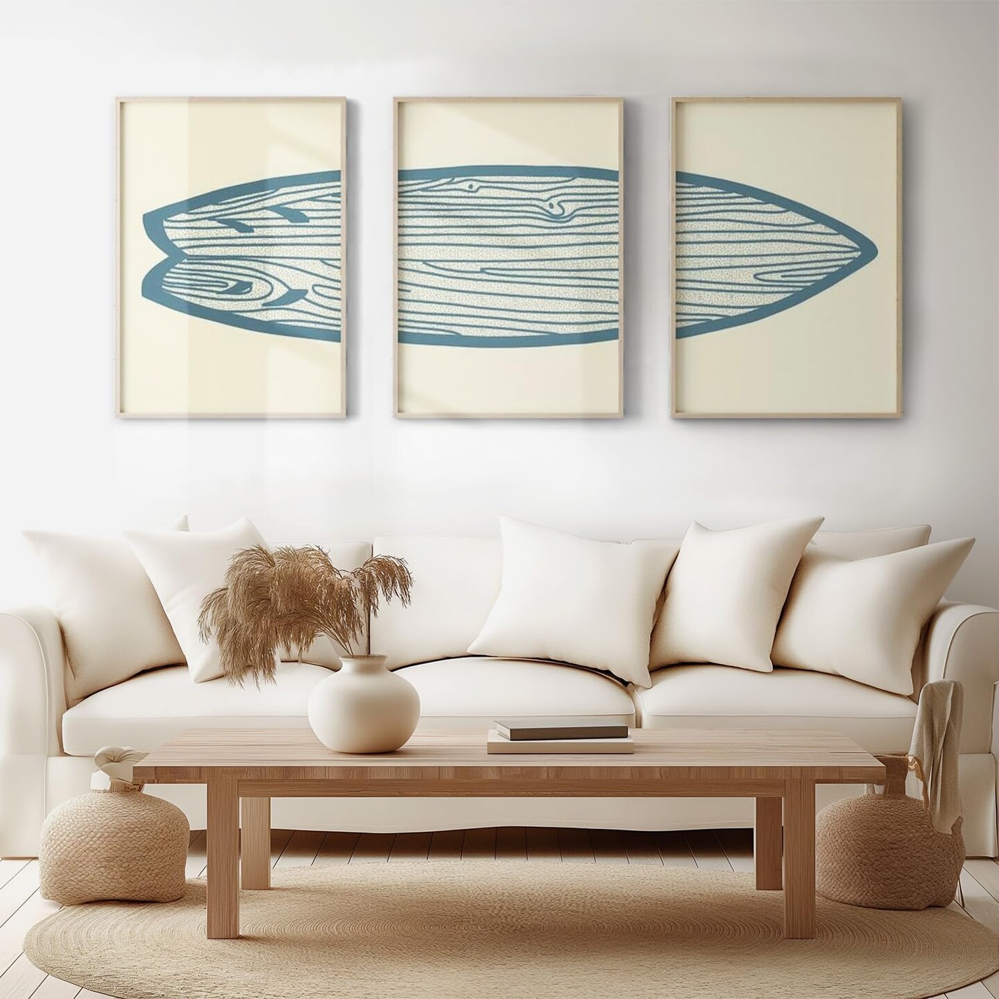 Surfboard Wall Decor 3 Pieces Surfboard Canvas Painting Prints Art Poster, Sea and Surf Pictures for Beach House, Living Room, Bedroom Decor with Wooden Inner Frame (25x40cmx3=10x16inchx3)