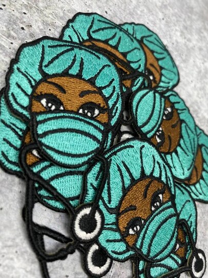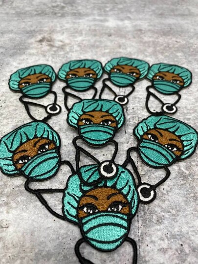 "Surgical Queen" w/ Stethoscope, Embroidery, Iron-on Exclusive Applique, Small Patch, Size 3" inches