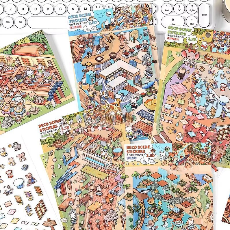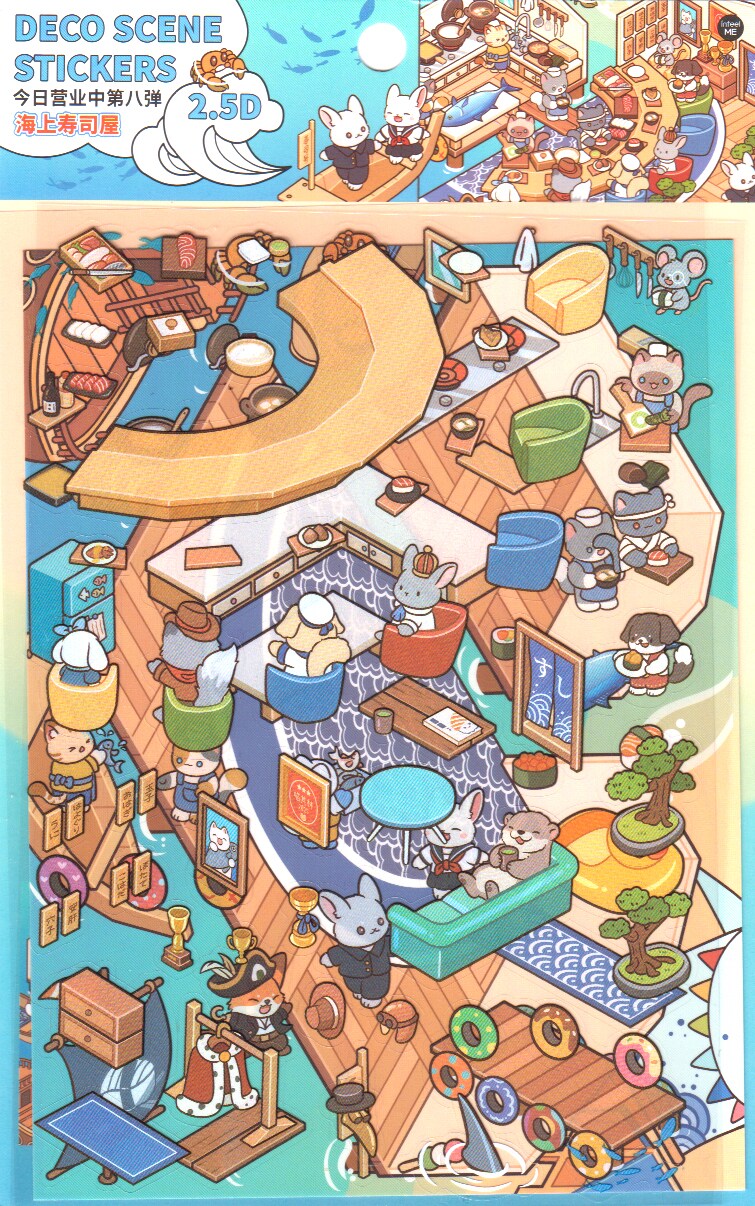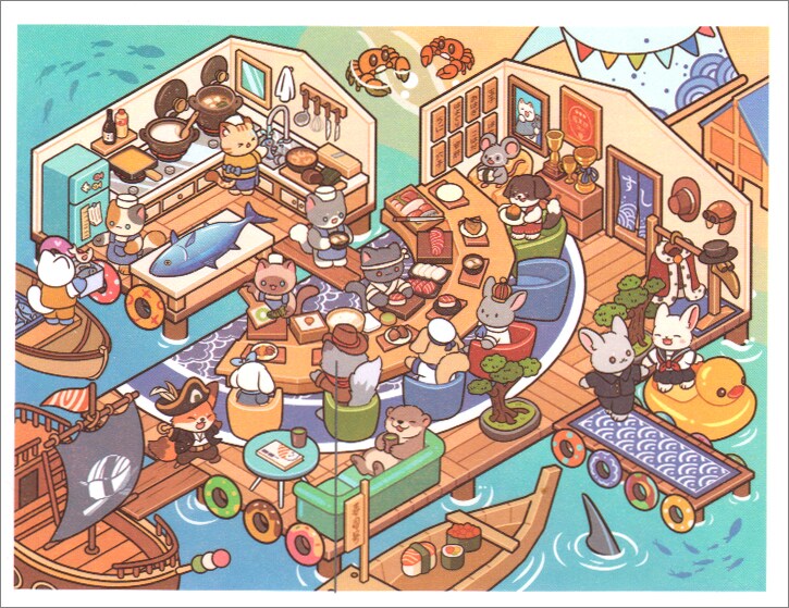 Sushi Restaurant Sticker Scene, Cute Isometric Stickers Activity, Adorabilities