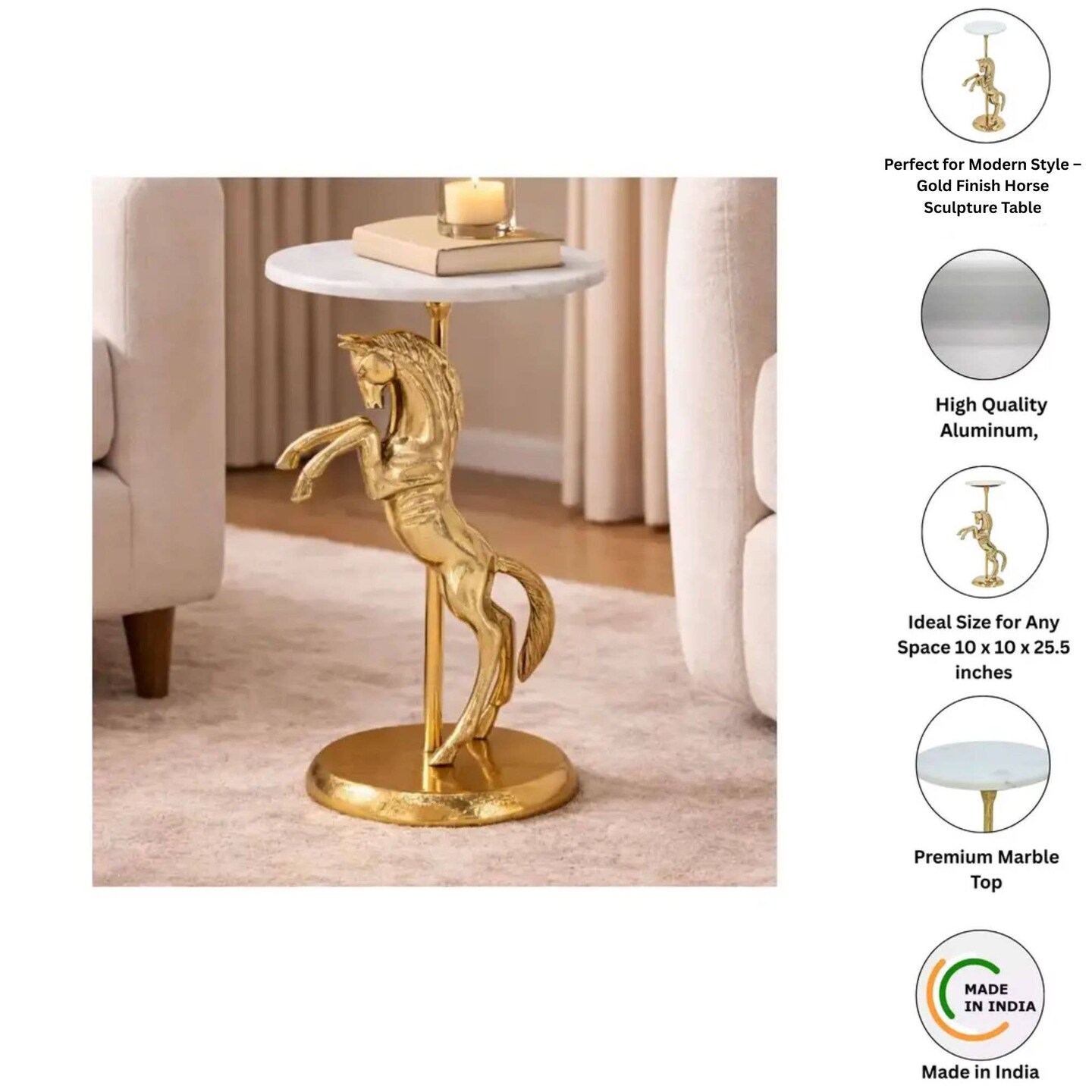 Swan Side Table with White Marble Top | Decorative Sculptural End Table | Aluminum Base | Gold Accent Table for Living Room | 10x10x25.5"