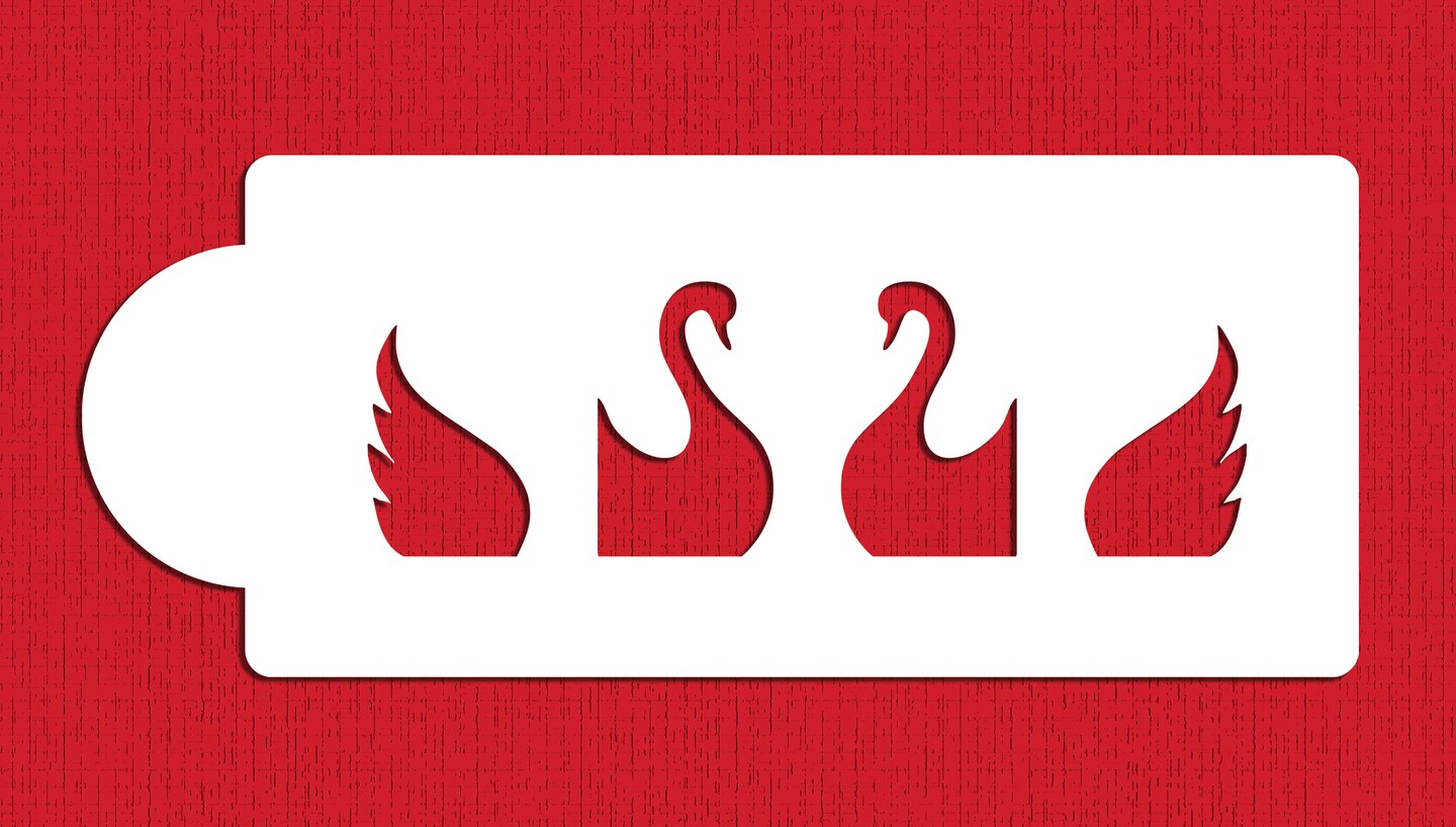 Swans 3-Dimensional Cake Stencil | C024 by Designer Stencils | Cake Decorating Tools | Baking Stencils for Royal Icing, Airbrush, Troweling, Molding | Reusable Plastic Food Grade Stencil for Cakes & Chocolates | Easy to Use & Clean Cake Stencil