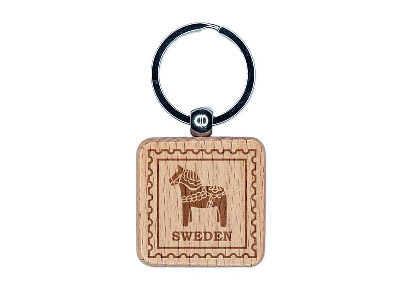 Sweden Travel Dalecarlian Dala Swedish Red Horse Engraved Wood Square Keychain Tag Charm