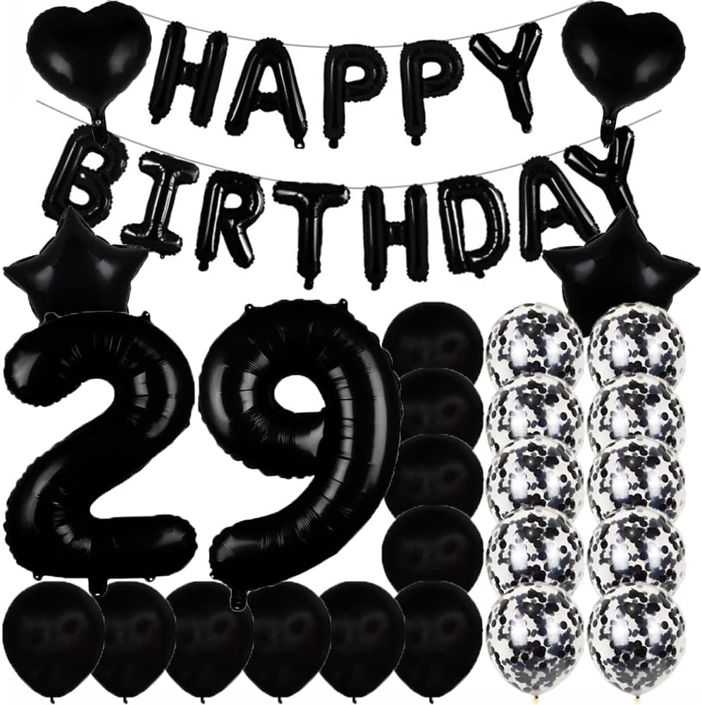 Sweet 29th Birthday Decorations – Black Number 29 Foil Mylar Balloons & Party Supplies Set for Girls, Women, Men, Photo Props (Black)