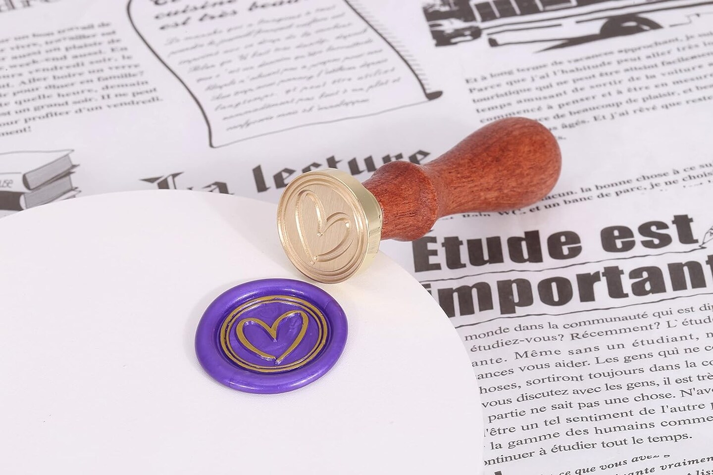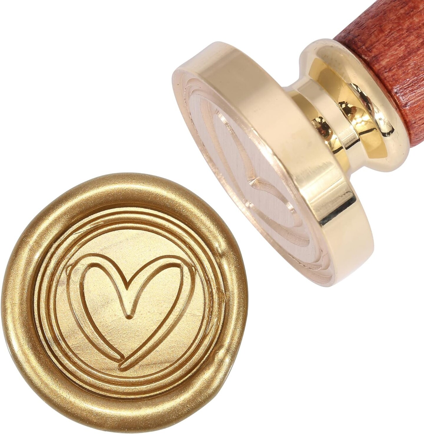 Sweet Heart Wax Seal Stamp, Vintage Brass Head Wooden Hilt Sealing Wax Stamp for Wedding Christmas Party Invitations Envelopes Gift Wrapping