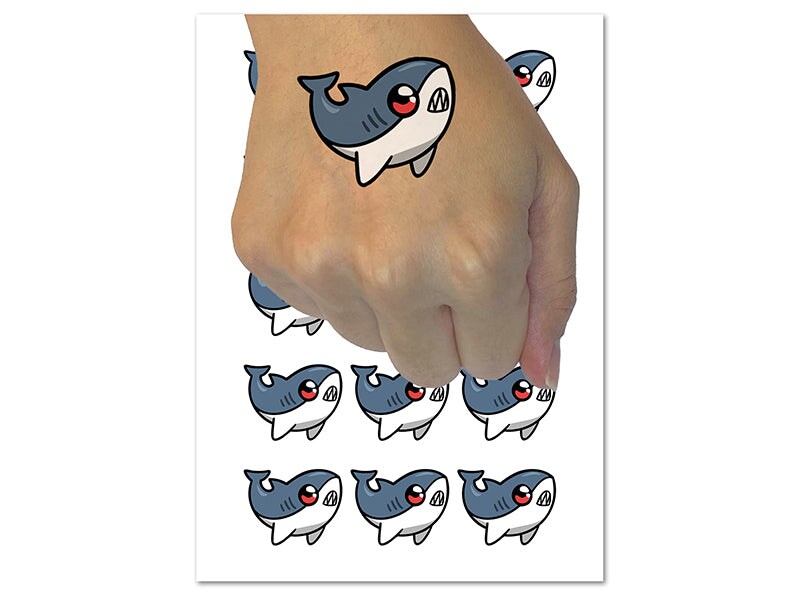 Sweet Kawaii Chibi Shark Temporary Tattoo Water Resistant Fake Body Art Set Collection (1 Sheet)