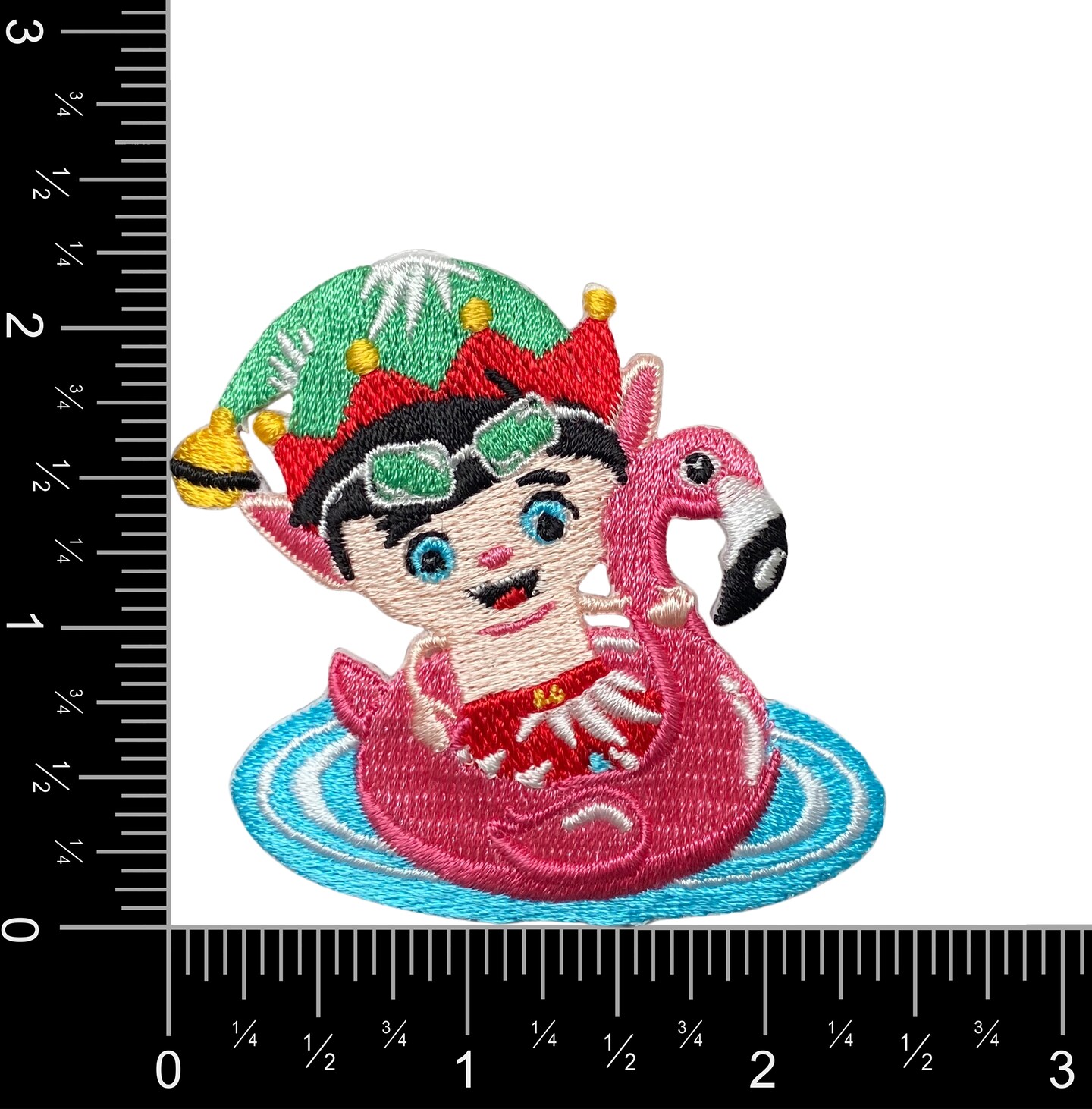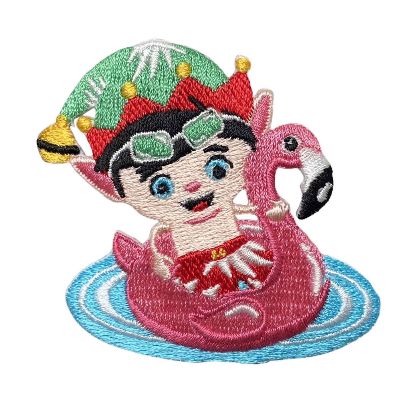 Swimming Christmas Elf with Flamingo Floatie - Embroidered Iron on Patch