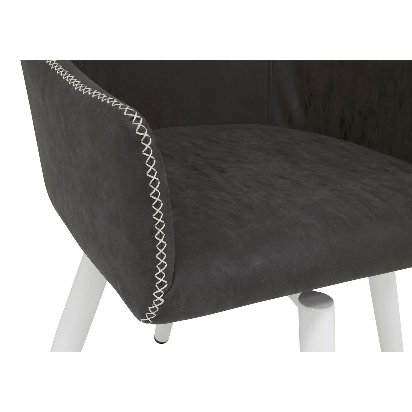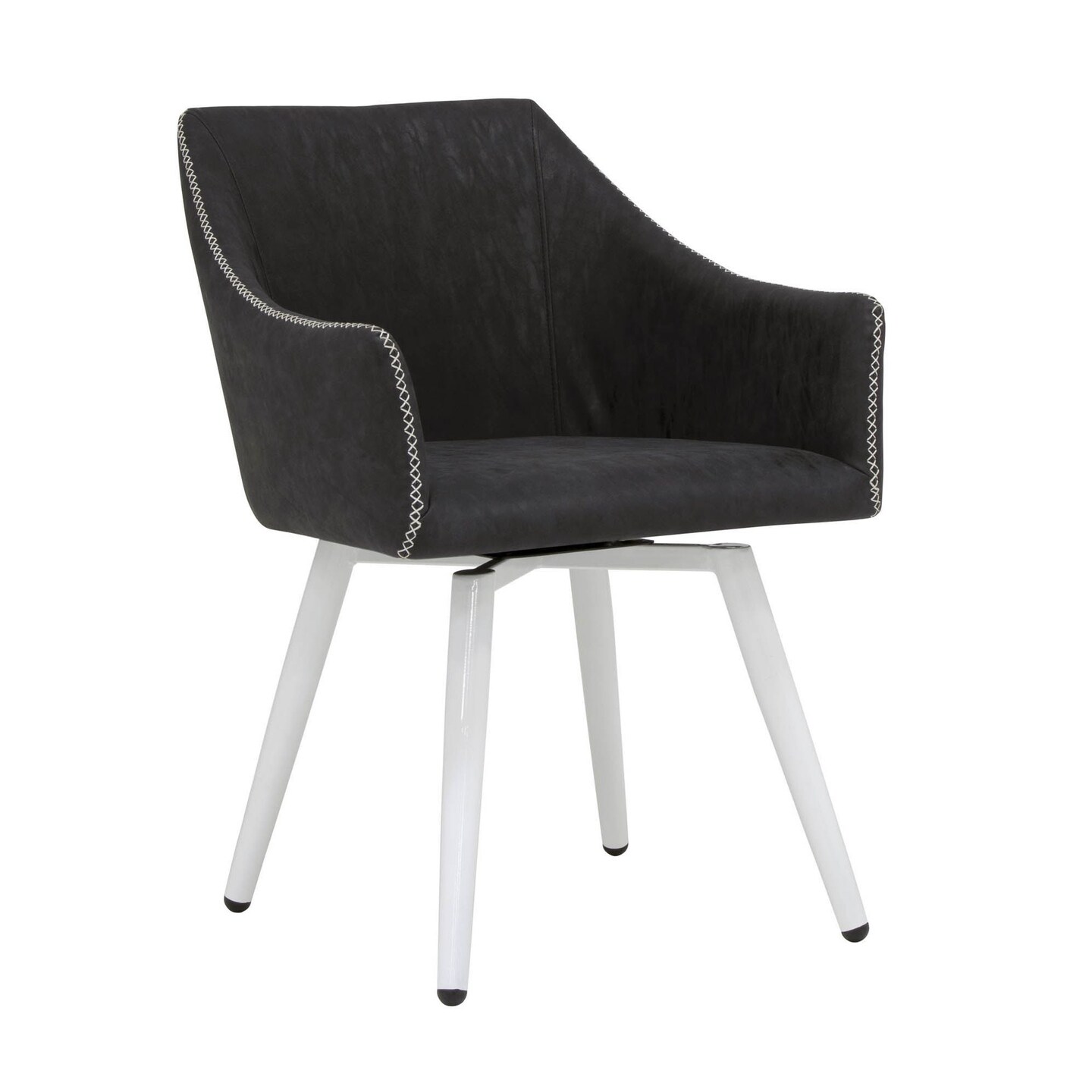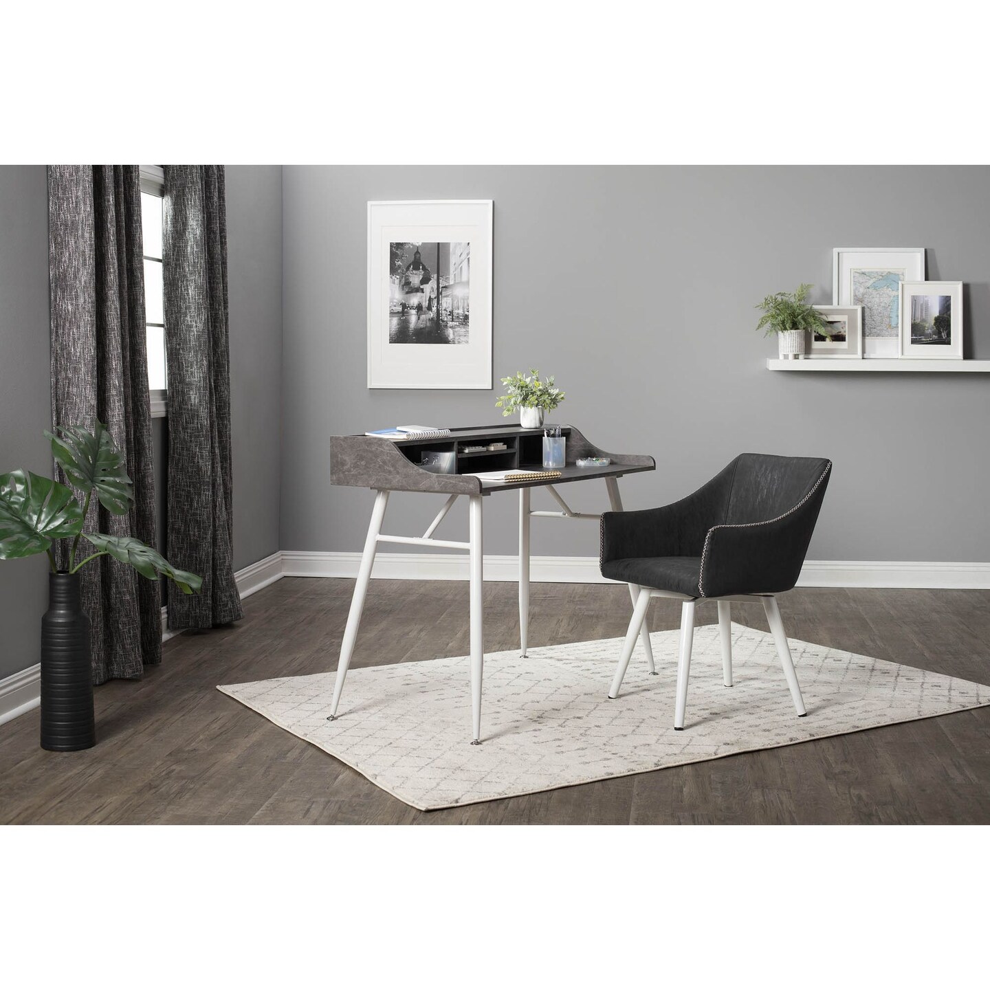 Sydney Swivel, Home Office Accent Chair With Arms In White Metal Legs / Patterned Dark Gray Faux Leather - White, Dark Grey