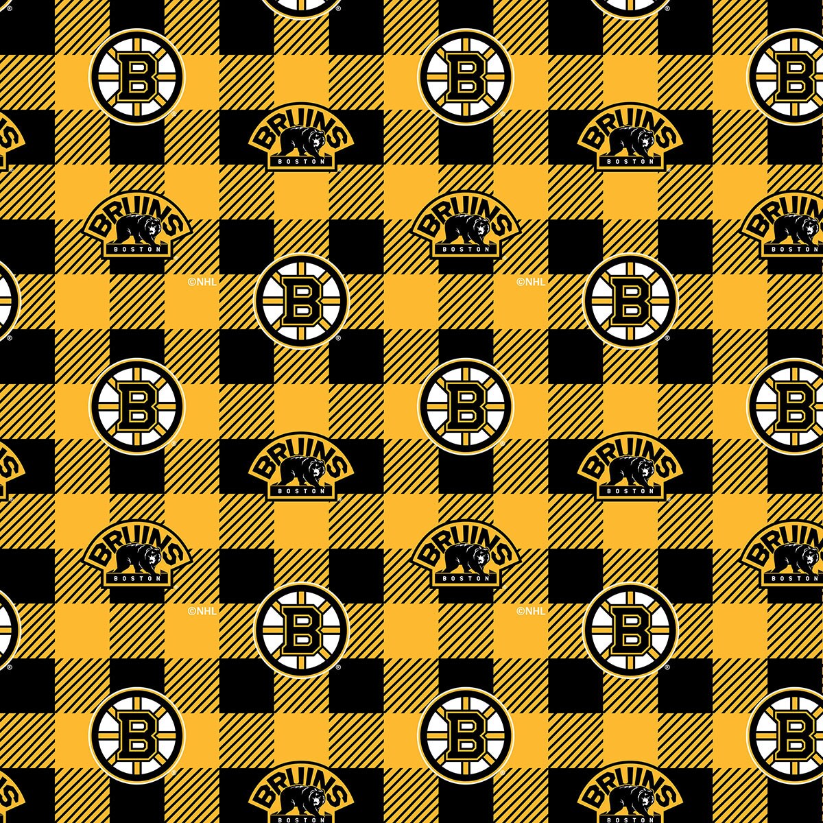 Sykel Enterprises NHL Team Fleece Blanket Fabric-Boston Bruins Buffalo Plaid Fleece Fabric