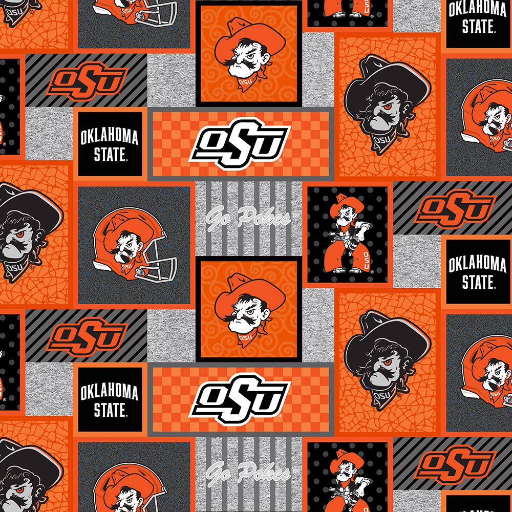 Sykel Enterprises-Oklahoma State University Fleece Fabric-Oklahoma State OSU Cowboys College Patch Fleece Blanket Fabric-Sold by the yard
