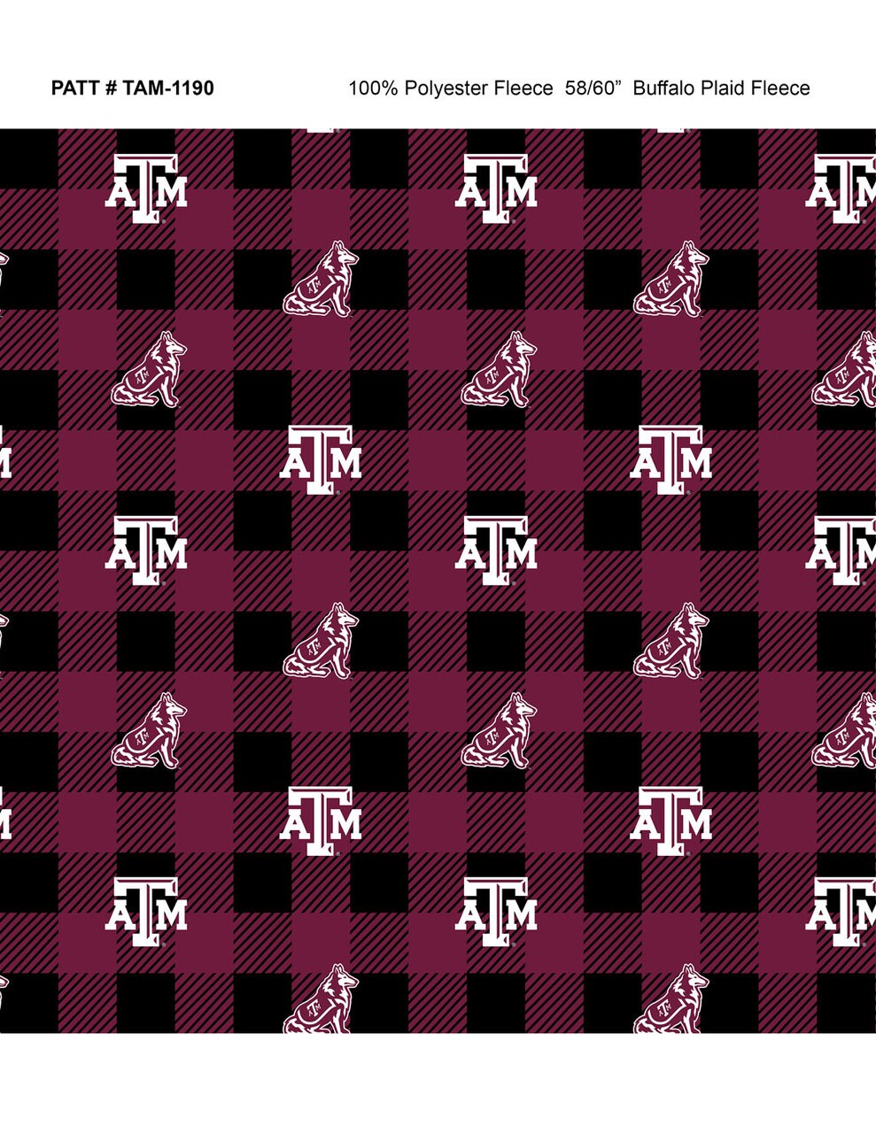 Sykel Enterprises-Texas A&M Fleece Fabric-Texas A and M Aggies Buffalo Plaid Fleece Blanket Fabric-Sold by the yard