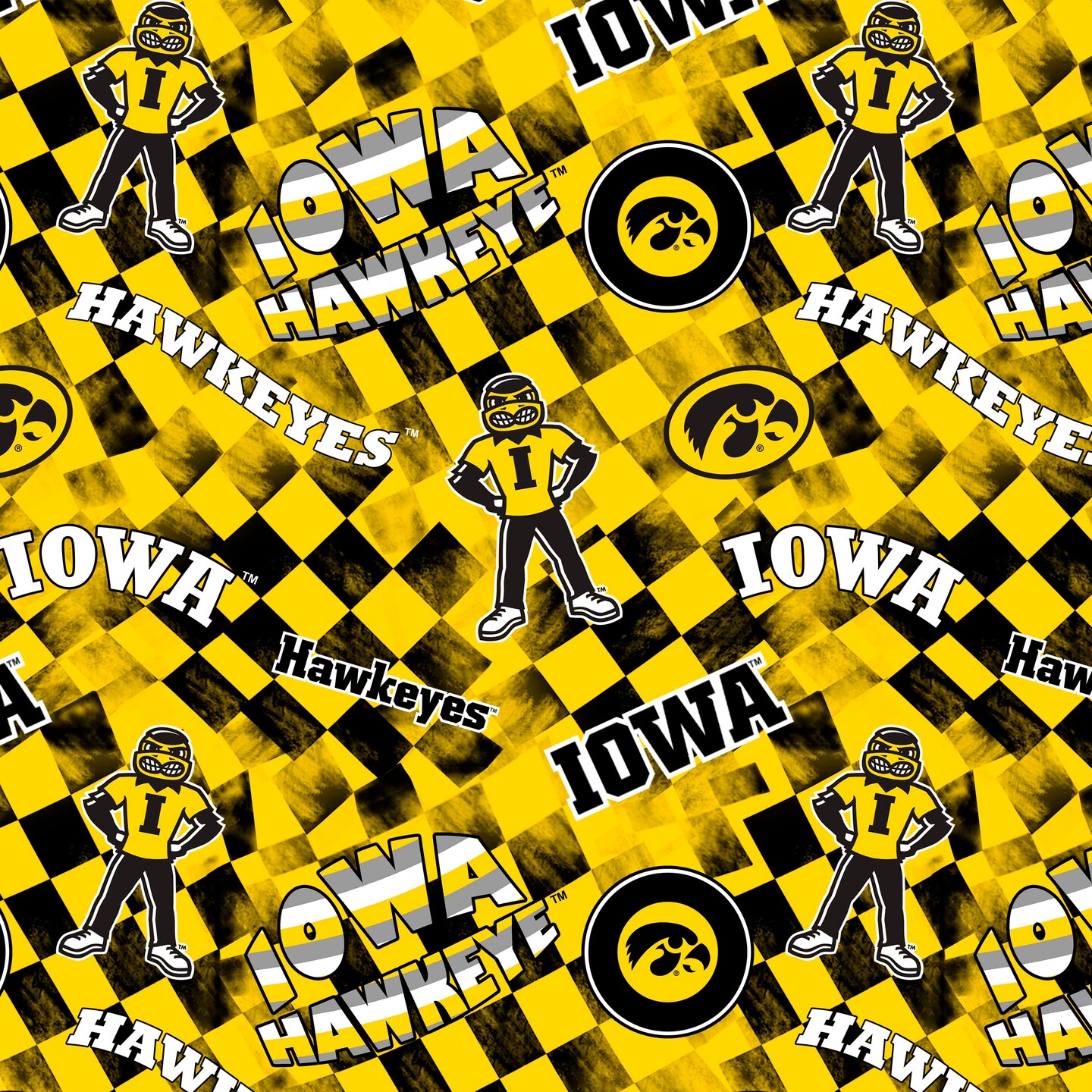 Sykel Enterprises-University of Iowa Cotton Quilting Fabric-Iowa Hawkeyes Check Allover Cotton Fabric Sold by the Yard
