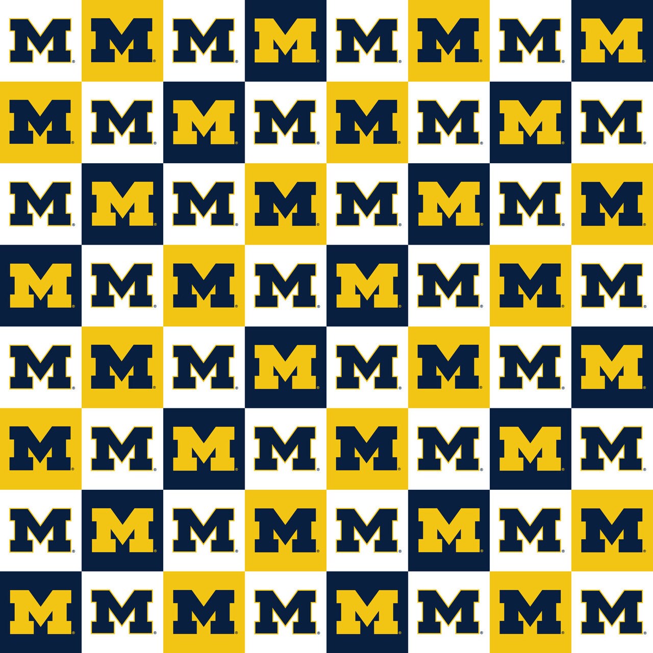 Sykel Enterprises-University of Michigan Cotton Fabric-Michigan Wolverines Collegiate Check Cotton Quilting Fabric