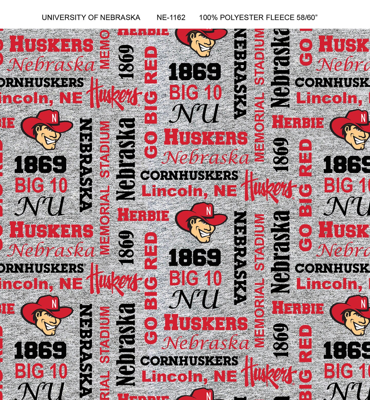 Sykel Enterprises-University of Nebraska Fleece Fabric-Nebraska Cornhuskers Heather Verbiage Fleece Blanket Fabric-Sold by the yard