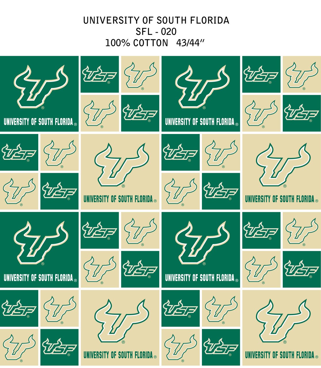 Sykel Enterprises-University of South Florida Cotton Fabric-USF Bulls Geometric Cotton Quilting Fabric