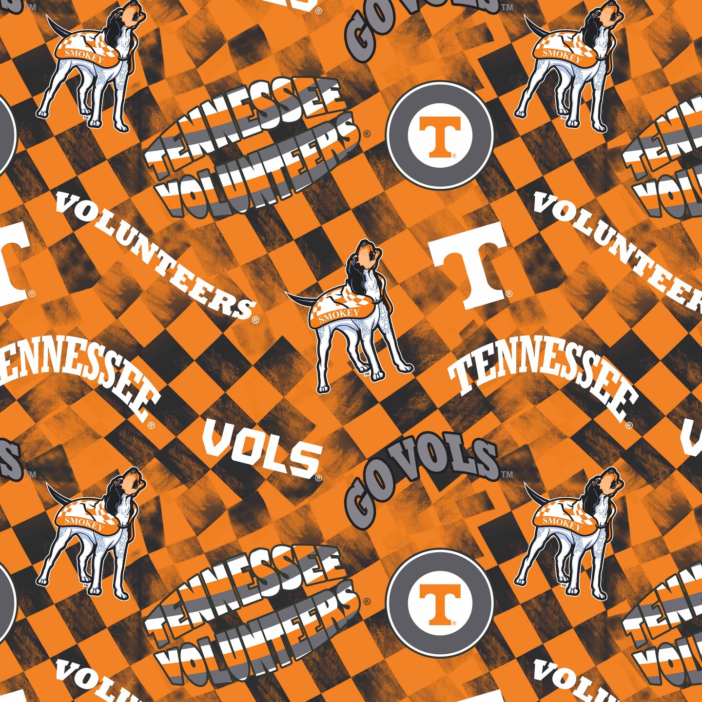 Sykel Enterprises-University of Tennessee Cotton Quilting Fabric-Tennessee Volunteers Check Allover Cotton Fabric Sold by the Yard