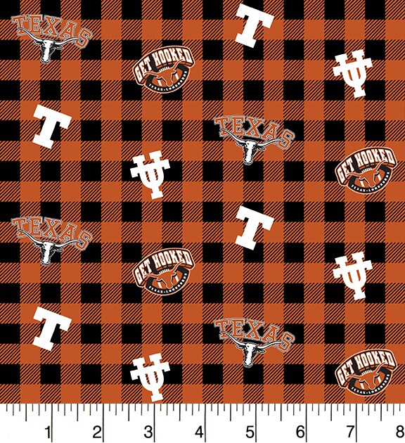 Sykel Enterprises-University of Texas Cotton Fabric-Texas Longhorns Buffalo Plaid Cotton Quilting Fabric