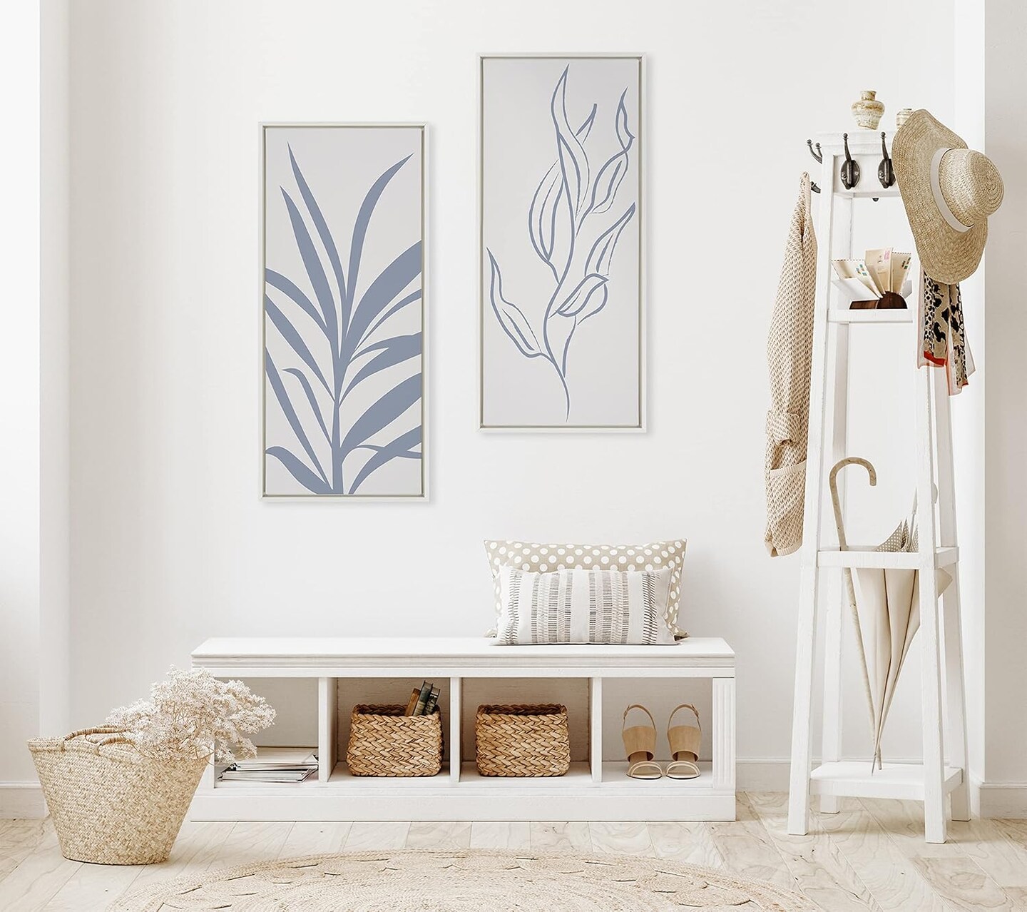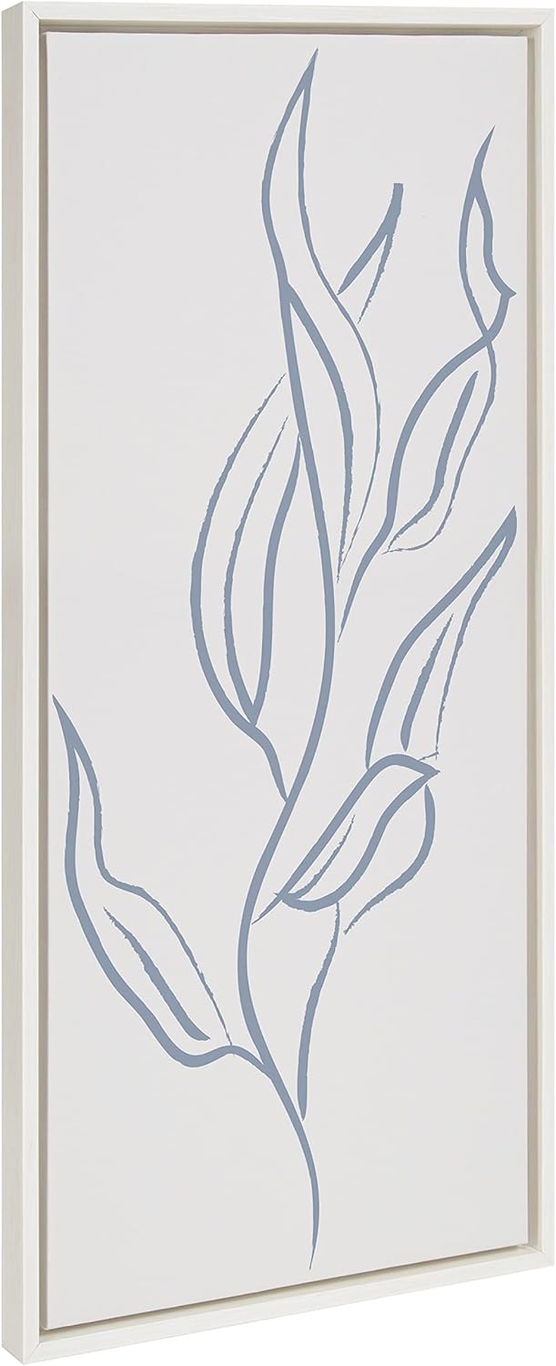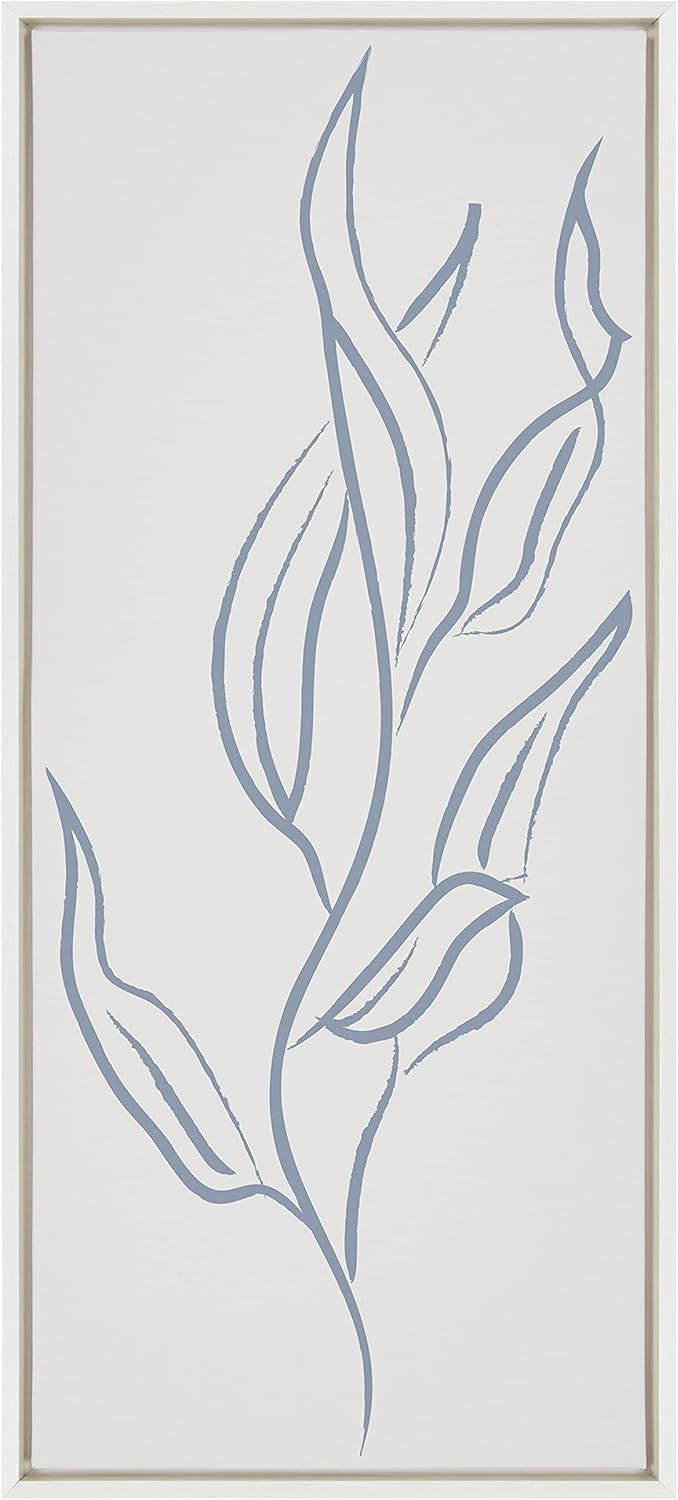 Sylvie Muted Illustrated Botanical Light Blue and Beige Framed Canvas Wall Art (18x40 White)