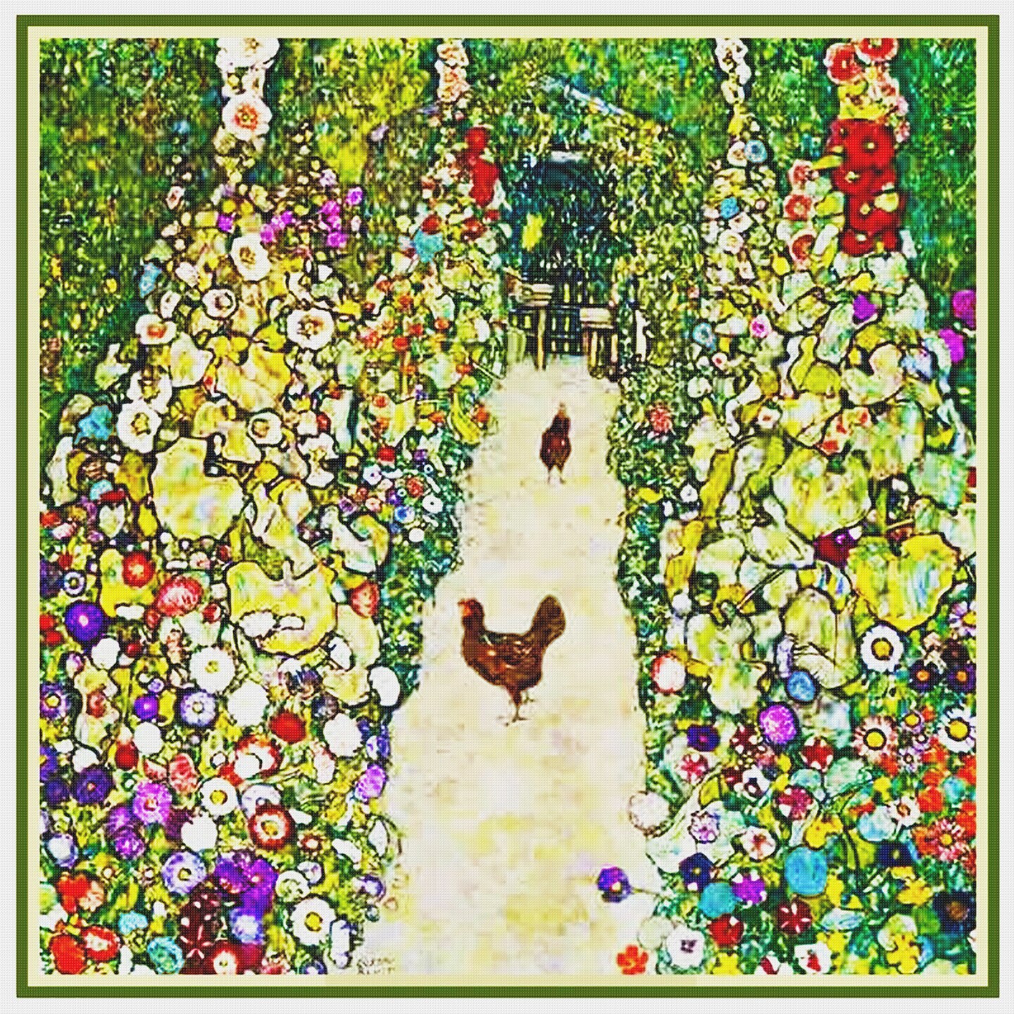 Symbolist Artist Klimt's Garden Chickens Counted Cross Stitch Chart Pattern