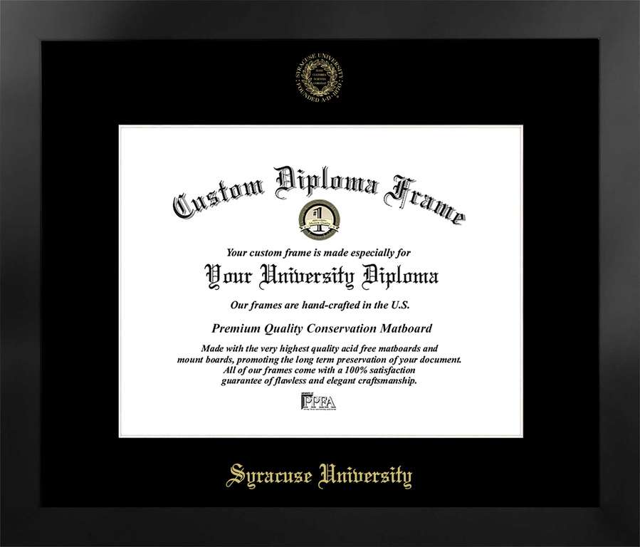 Syracuse University 11w x 8.5h Manhattan Black Single Mat Gold Embossed Diploma Frame with Bonus Campus Images Lithograph (value savings at $59)