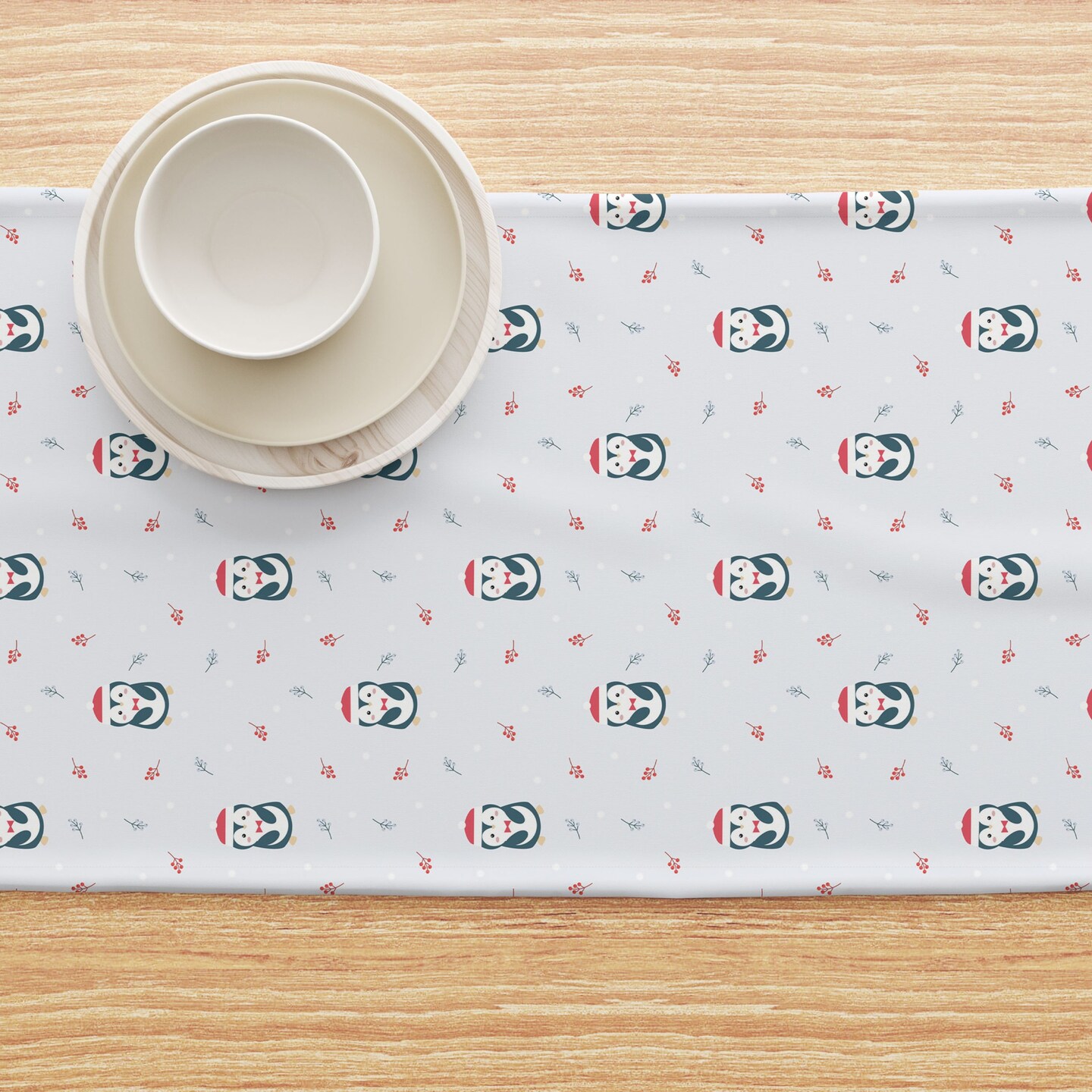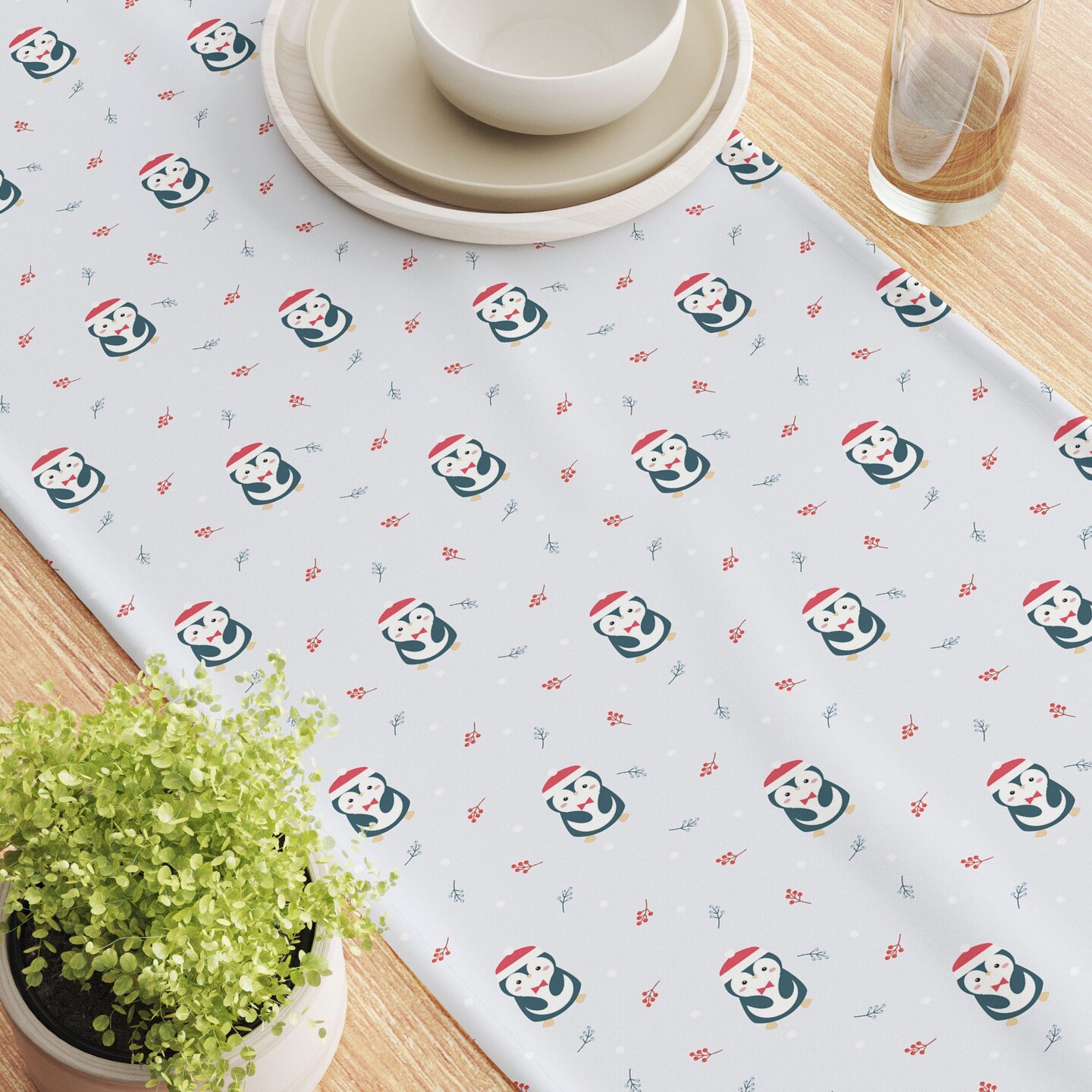 Table Runner, 100% Cotton, 16x72", Christmas Penguins