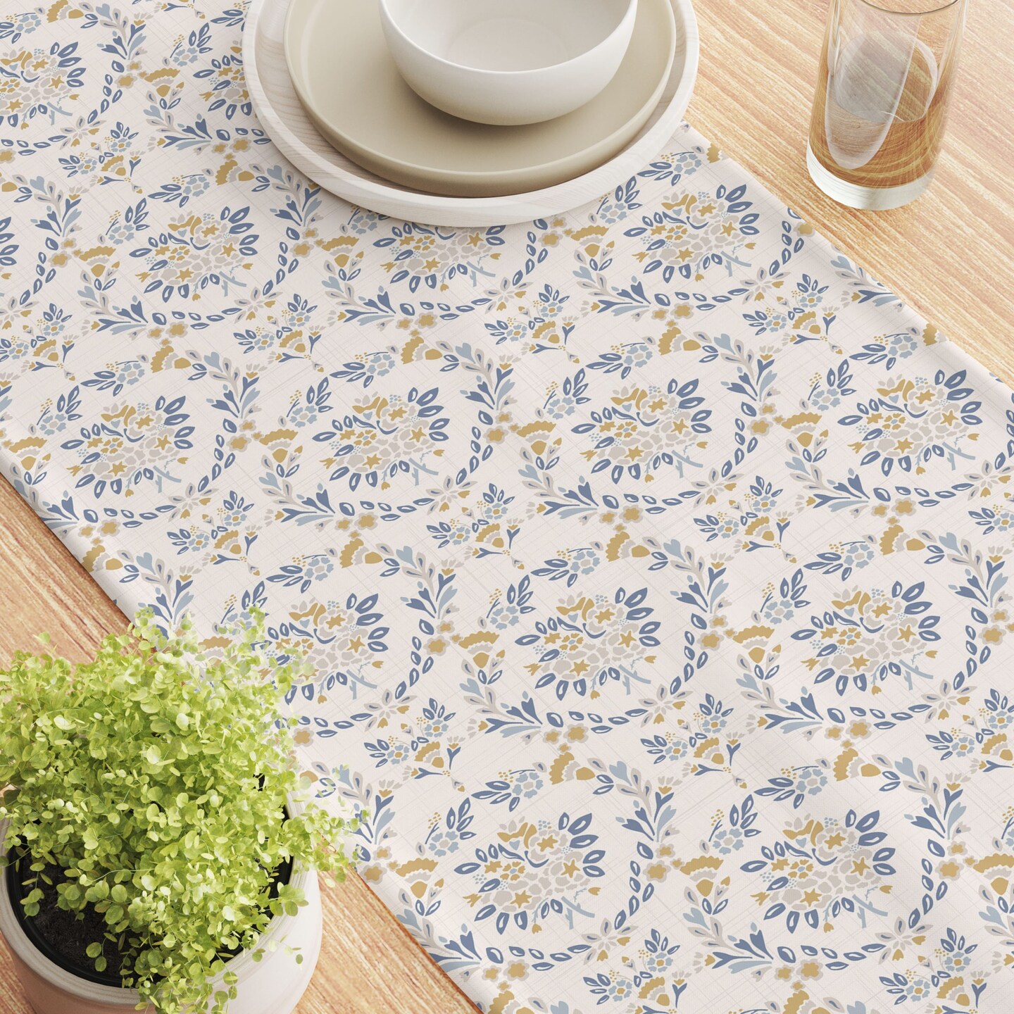 Table Runner, 100% Cotton, 16x72", Elegant Floral Circles