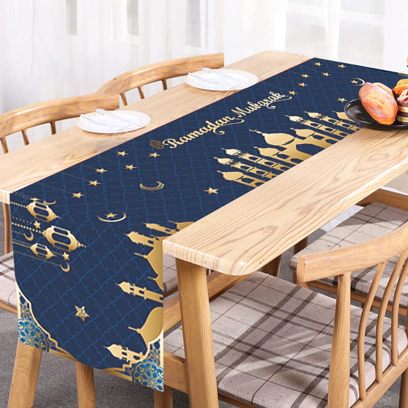 Table Runner Table Decorations - Ramadan Mosque Lantern Islamic Happy Ramadan Mubarak Party Supplies Decorations, 13.8x71 inches