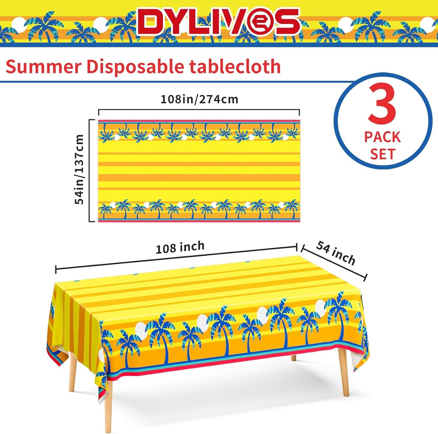 Tablecloth Plastic Waterproof Table Cover 3 Pack (54 x 108 inch)