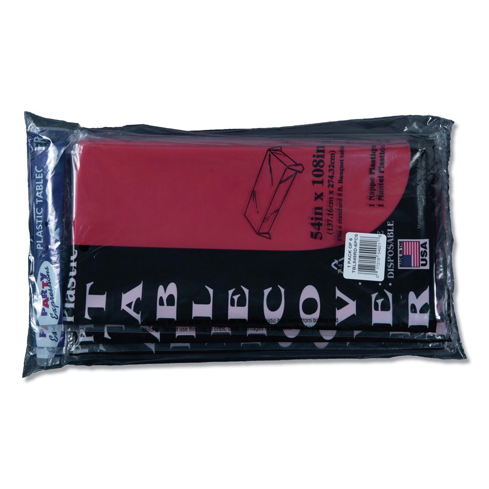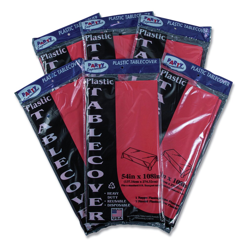 Tablemate Heavyweight Plastic 54 in. x 108 in. Table Set Rectangular Table Cover - Red (6/Pack)
