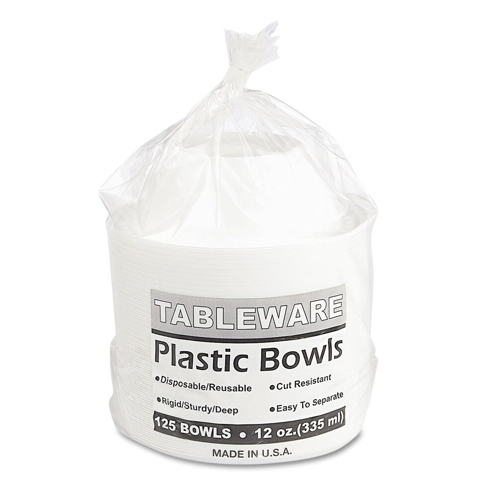 Tablemate Plastic Dinnerware, Bowls, 12 Oz, White, 125/pack