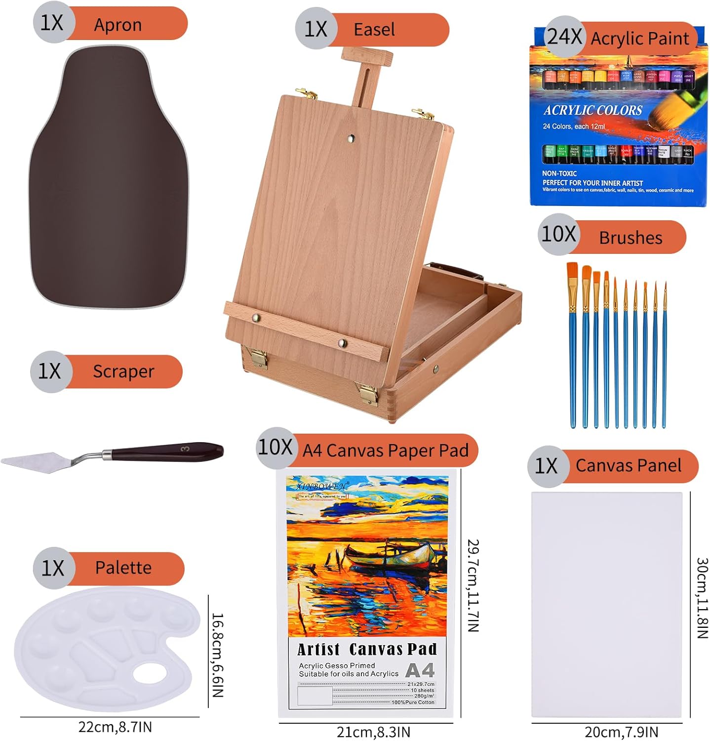 Tabletop Easel Acrylic Paint Set, 40 Pack Painting Kits for Adults