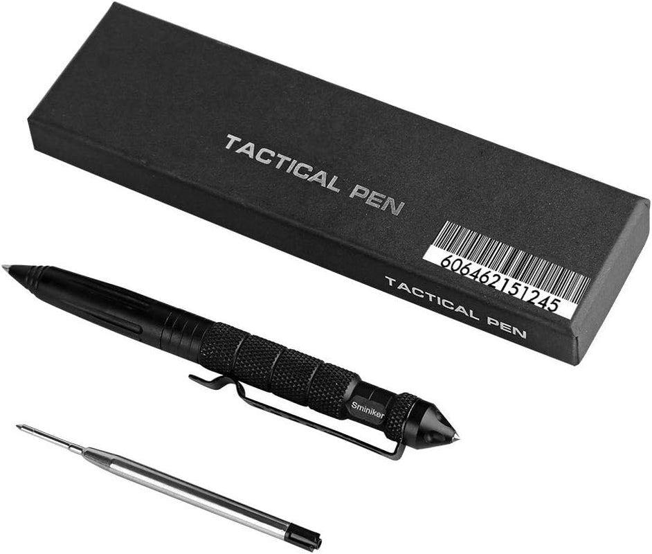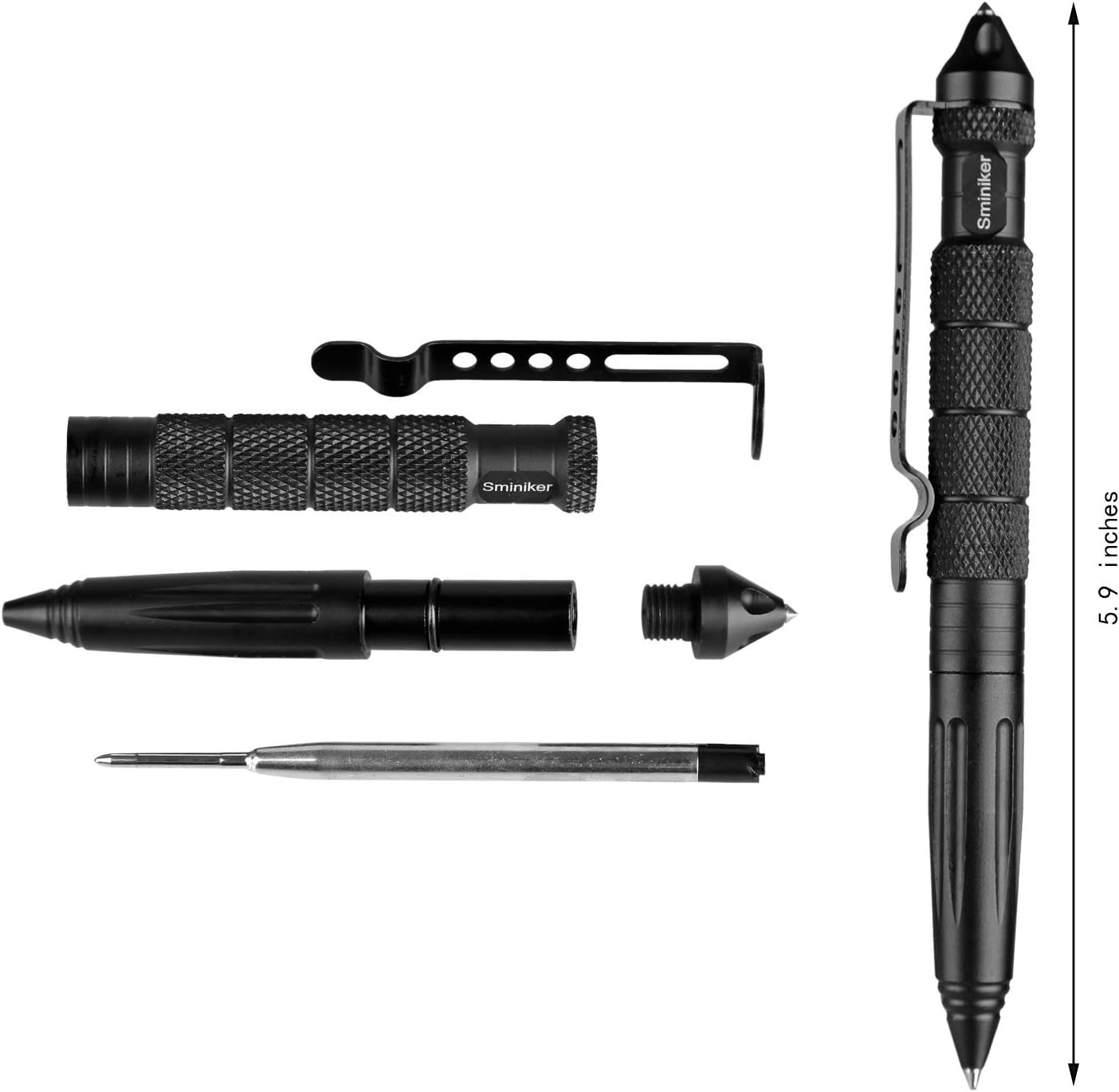 Tactical Pen with 6 Ink Refills Aircraft Aluminum Pen with Glass Breaker Writing Multifunctional Tool (Black)