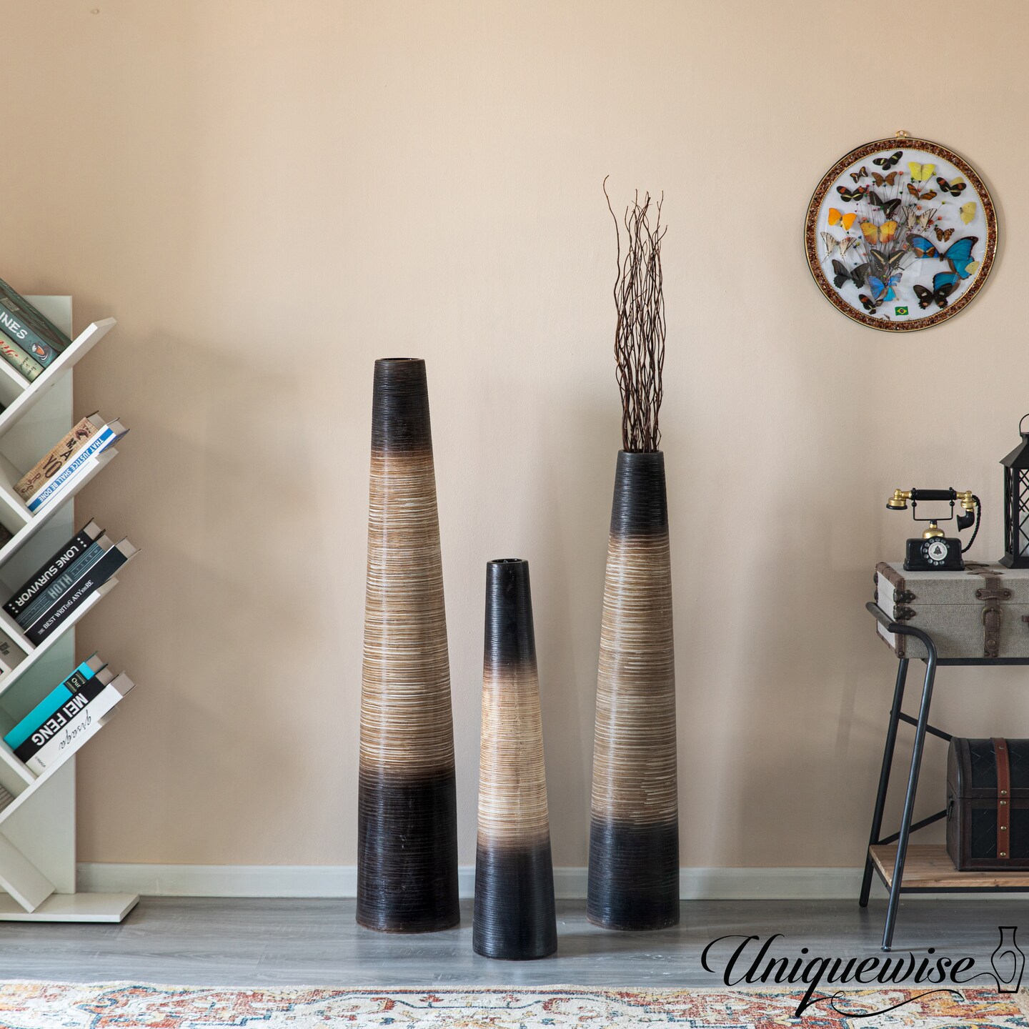 Tall Handcrafted Brown Ceramic Floor Vase - Waterproof Cylinder-Shaped Freestanding Vase, Ideal for Tall Floral Arrangements and as a Standalone Piece