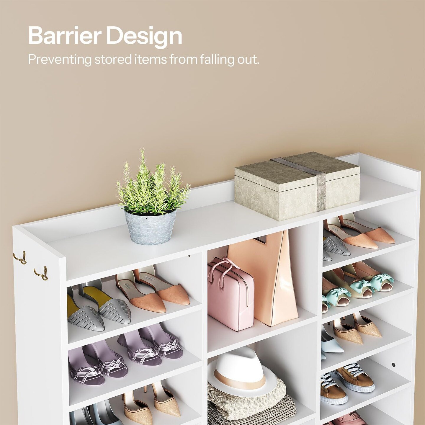 Tall Shoe Organizer with 10 Shelves, Non-Woven Drawer and Hanging Hooks