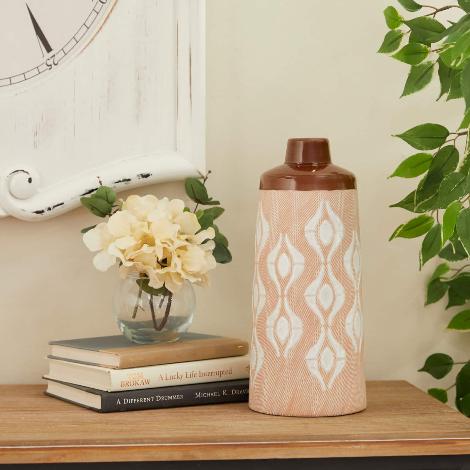 Tan Porcelain Traditional Vase 12" x 5" x 5"