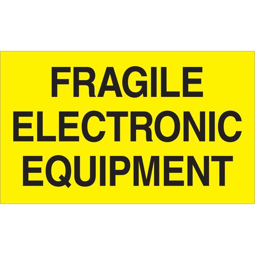 Tape Logic Labels, "Fragile Electronic Equipment", 3" x 5", Fluorescent Yellow, 500/Roll