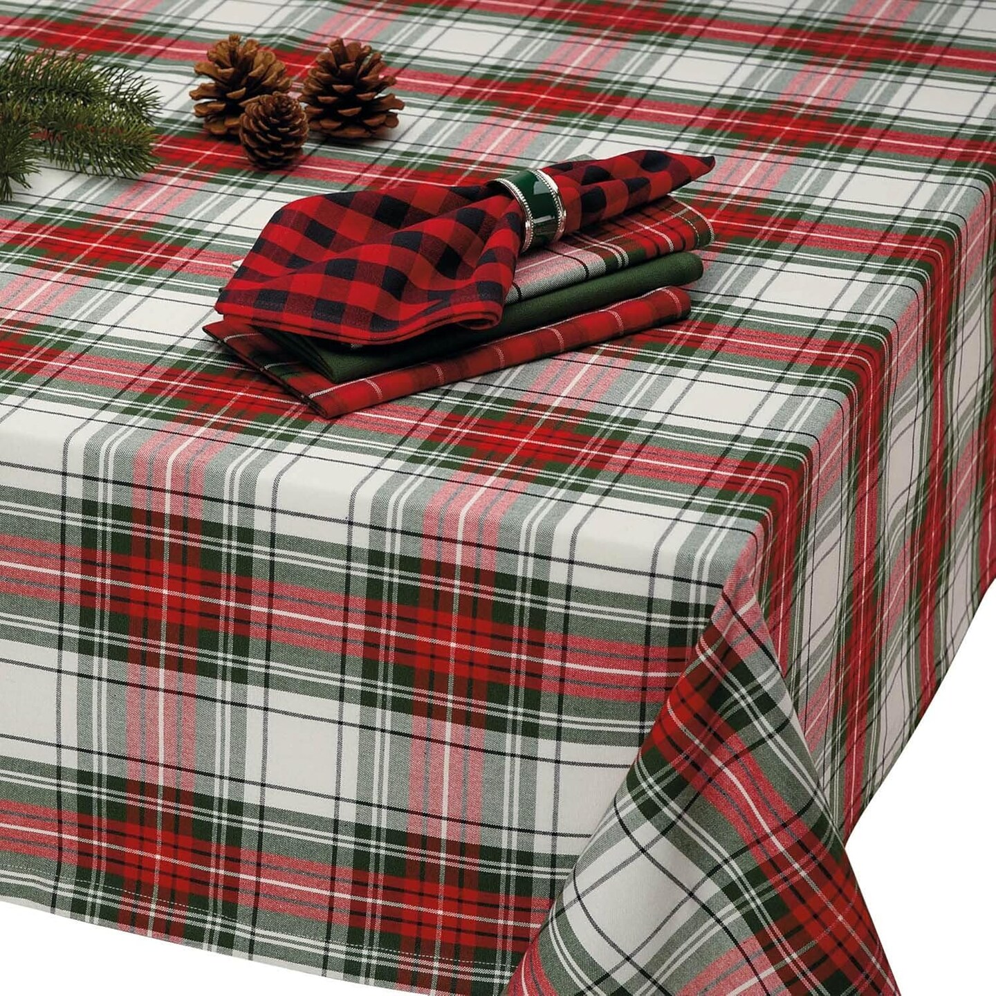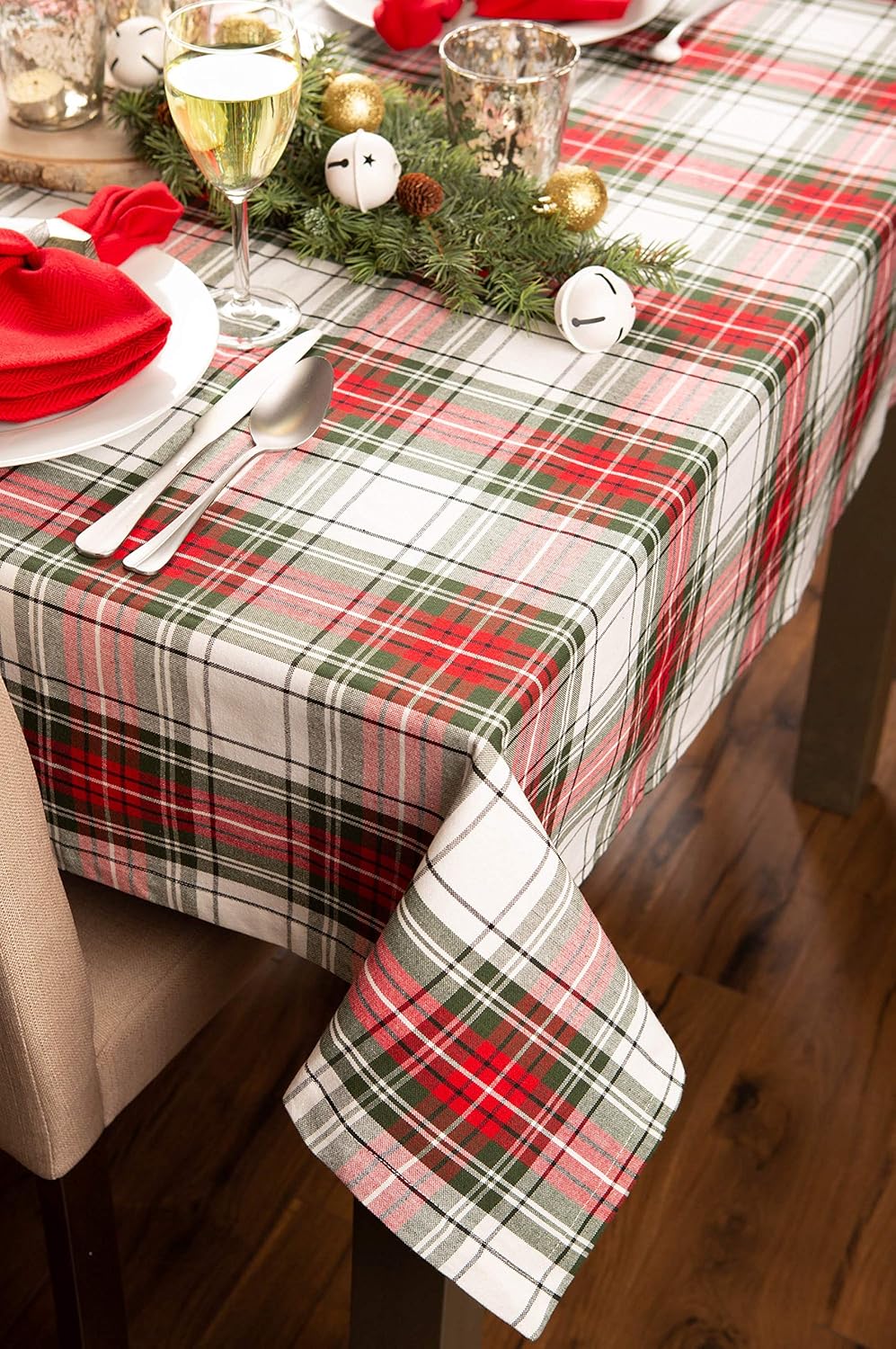 Tartan Plaid Collection Holiday Dining Table & Kitchen Décor, Square Christmas Tablecloth, 52x52, Red, Green & White