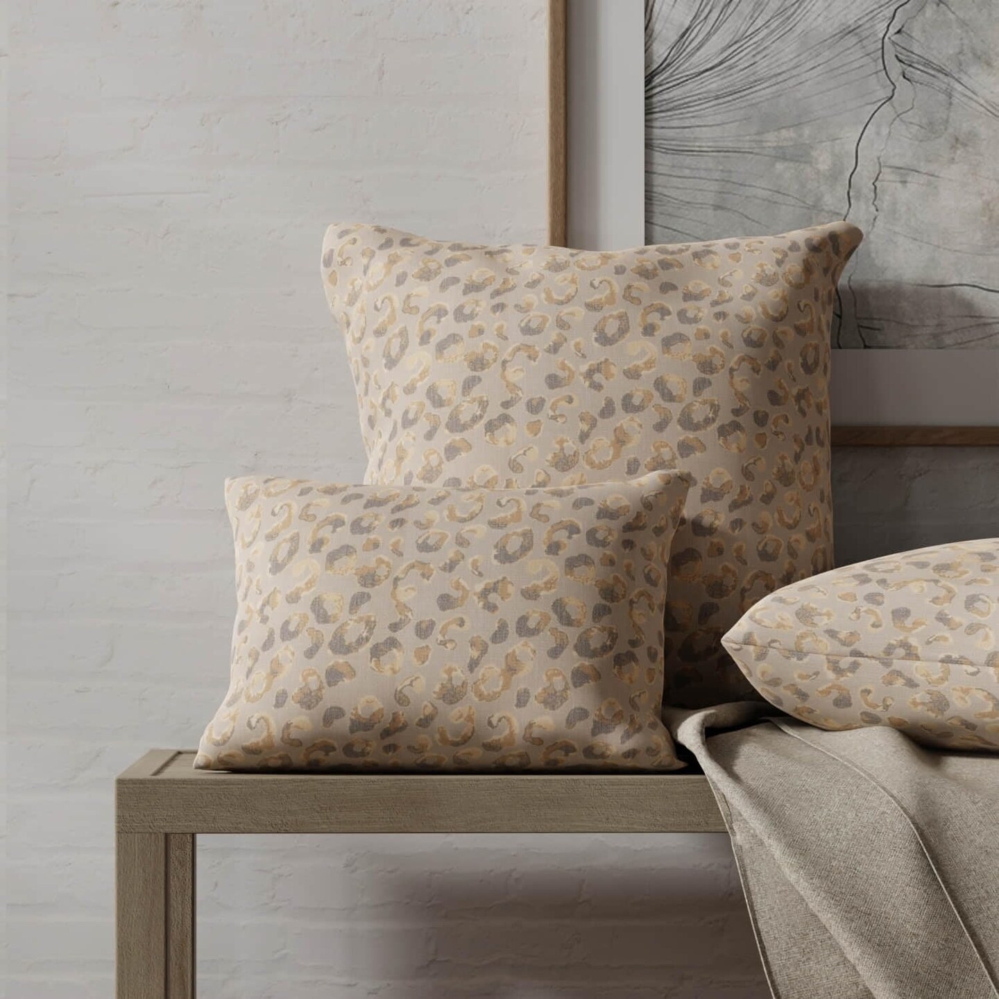Taupe & Brown Leopard Animal Print Linen Look Upholstery Fabric by The Yard - SKU: Petra Pebble