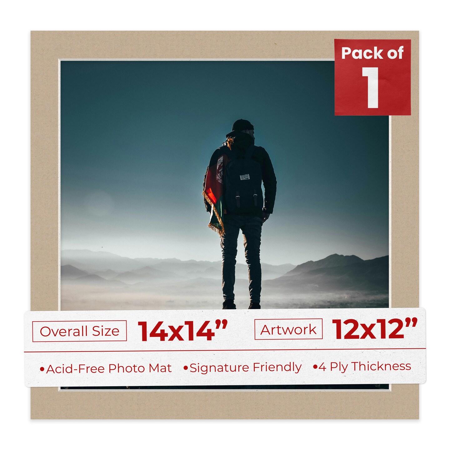 Tawny Brown Mat Board for 14x14 Frames - Fits 12x12 Photos