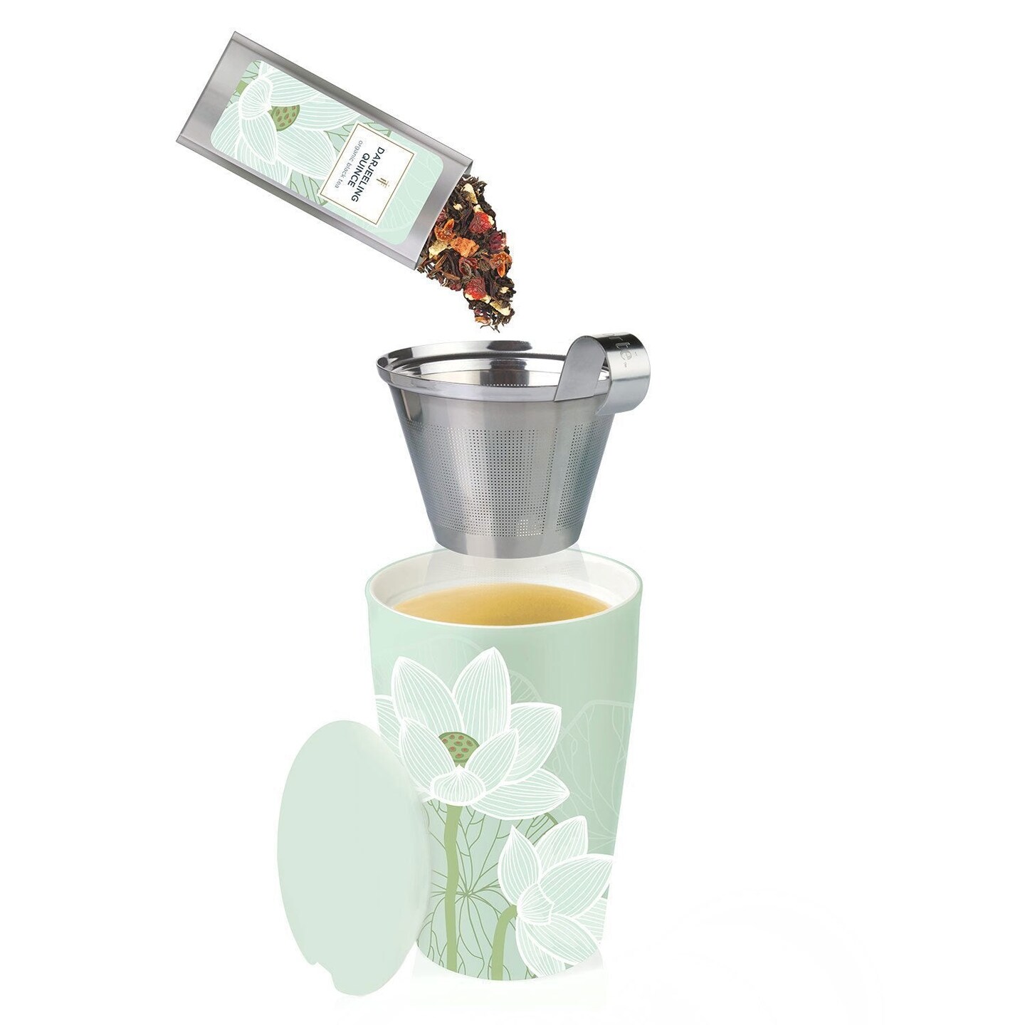 Tea Forte Double-Walled Ceramic Kati Cup, Removable Stainless Steel Infuser Basket and Lid, Steeps 12 oz Loose Leaf Tea, Dishwasher & Microwave Safe, Lotus Blossom