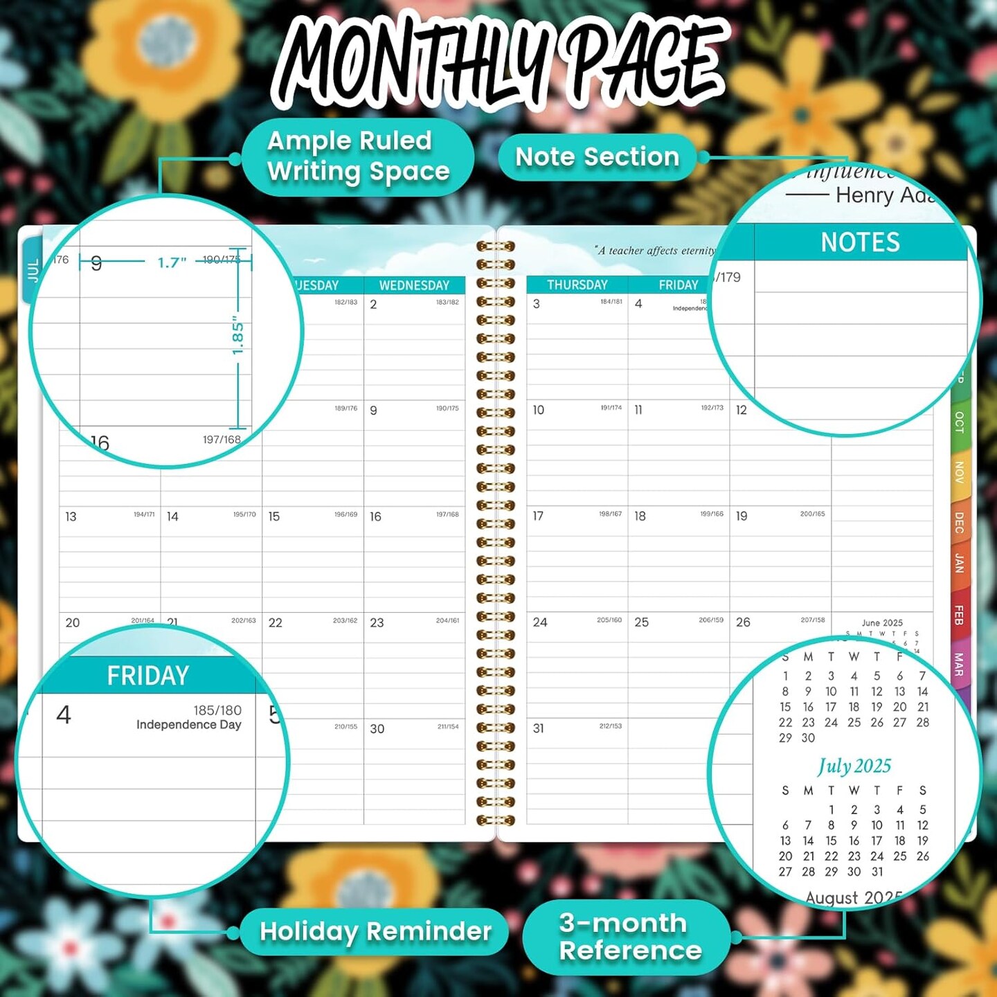 Teacher Planner 2025-2026 with Colourful Monthly Tabs - 8.5" x 11"