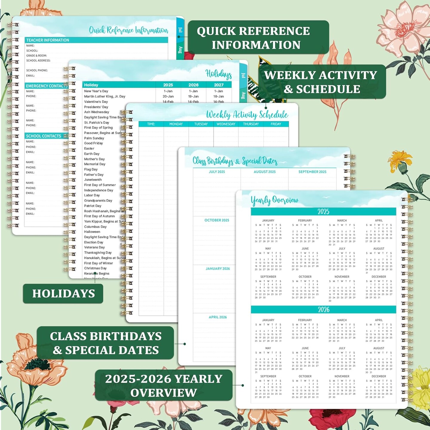 Teacher Planner 2025-2026 with Inspirational Quotes (multicolor) 8.5'' x 11''