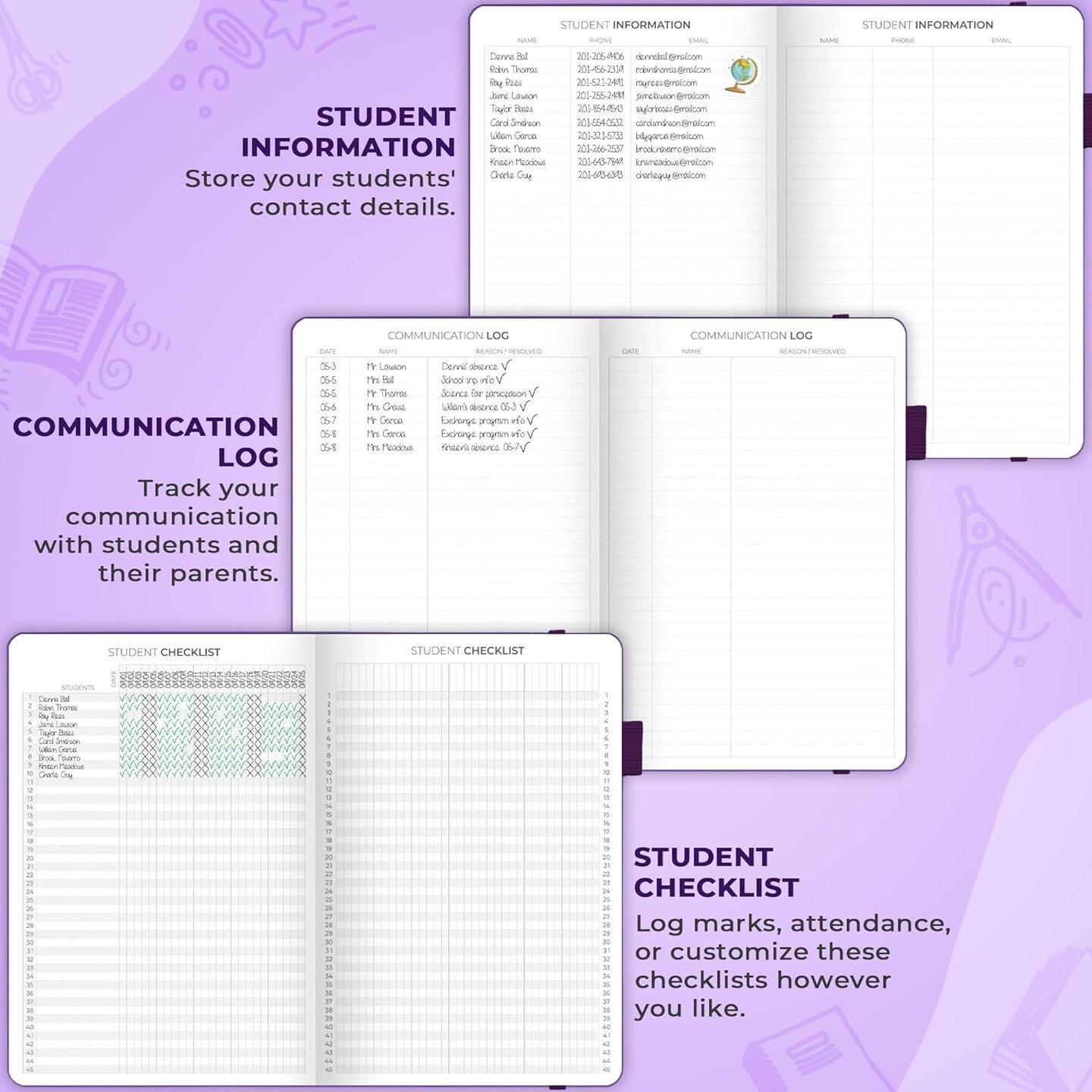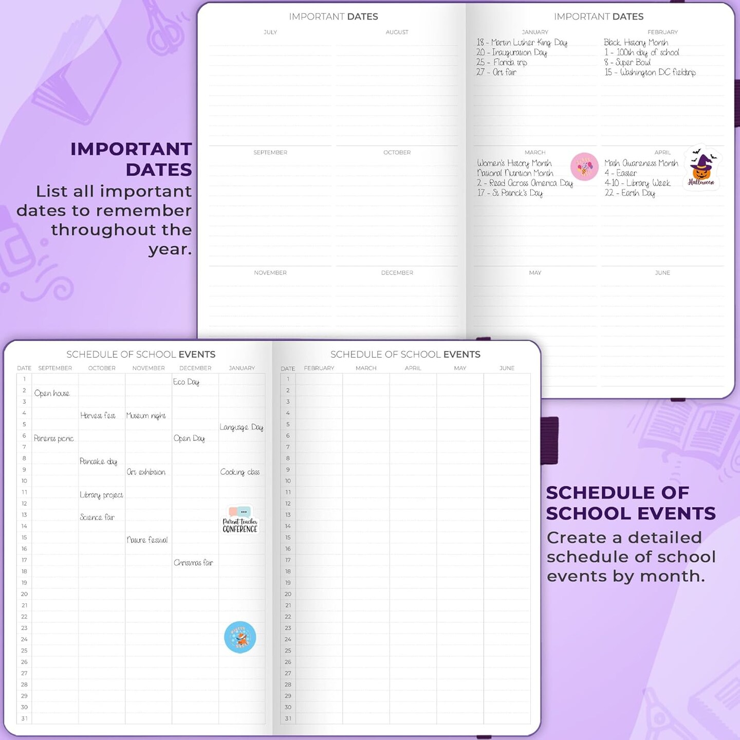 Teacher Planner – School Year Planner with Calendars & Lesson Plans(Purple)