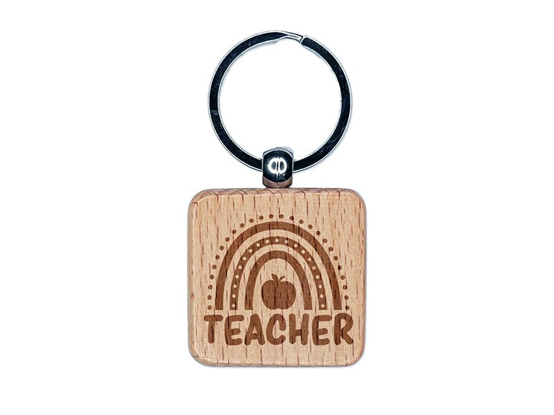 Teacher Rainbow Engraved Wood Square Keychain Tag Charm