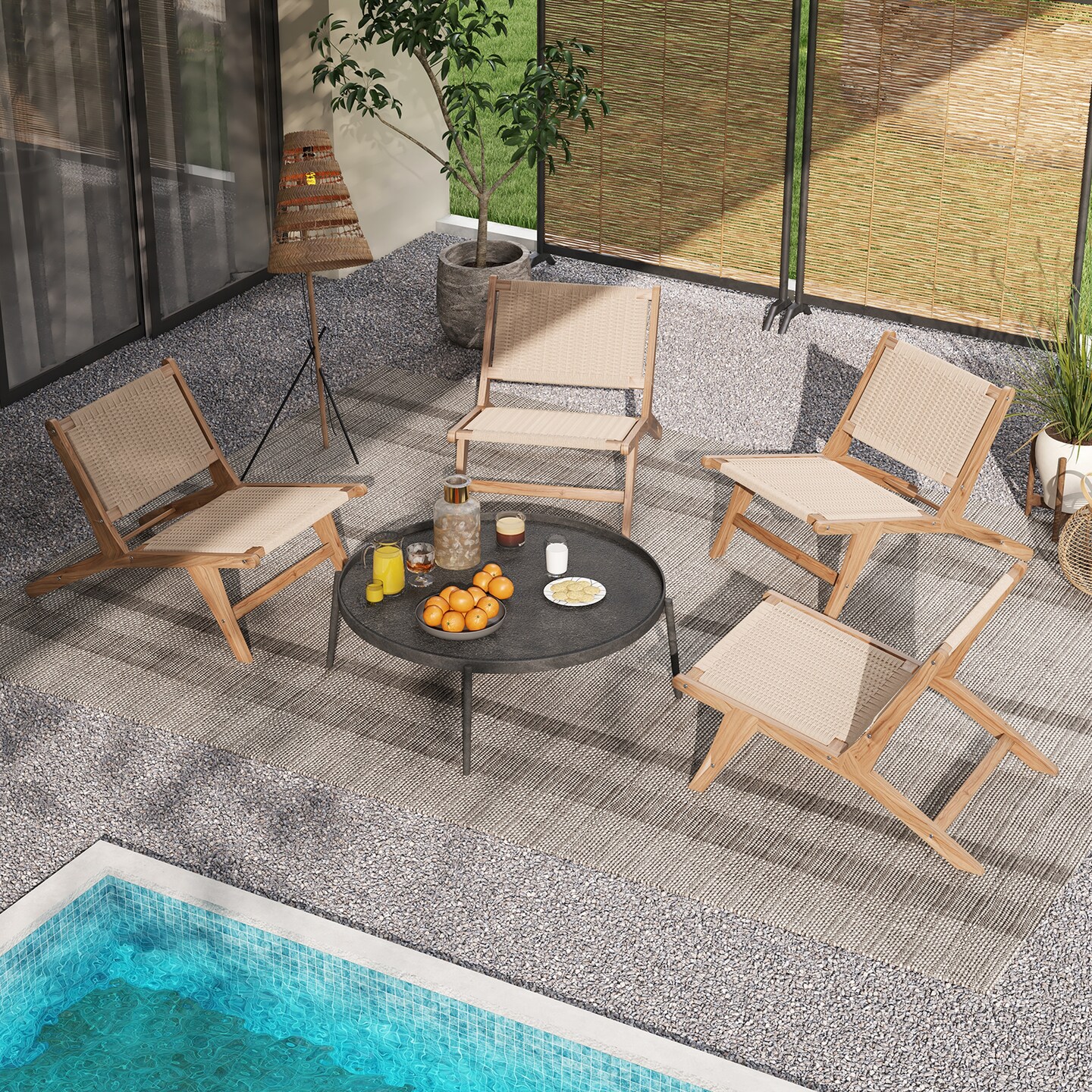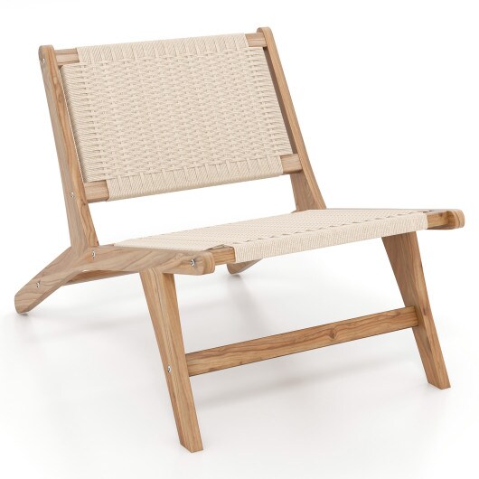 Teak Wooden Chair with Braided Rope Seat and Backrest for Backyard - 36.5" x 23.5" x 25.5"
