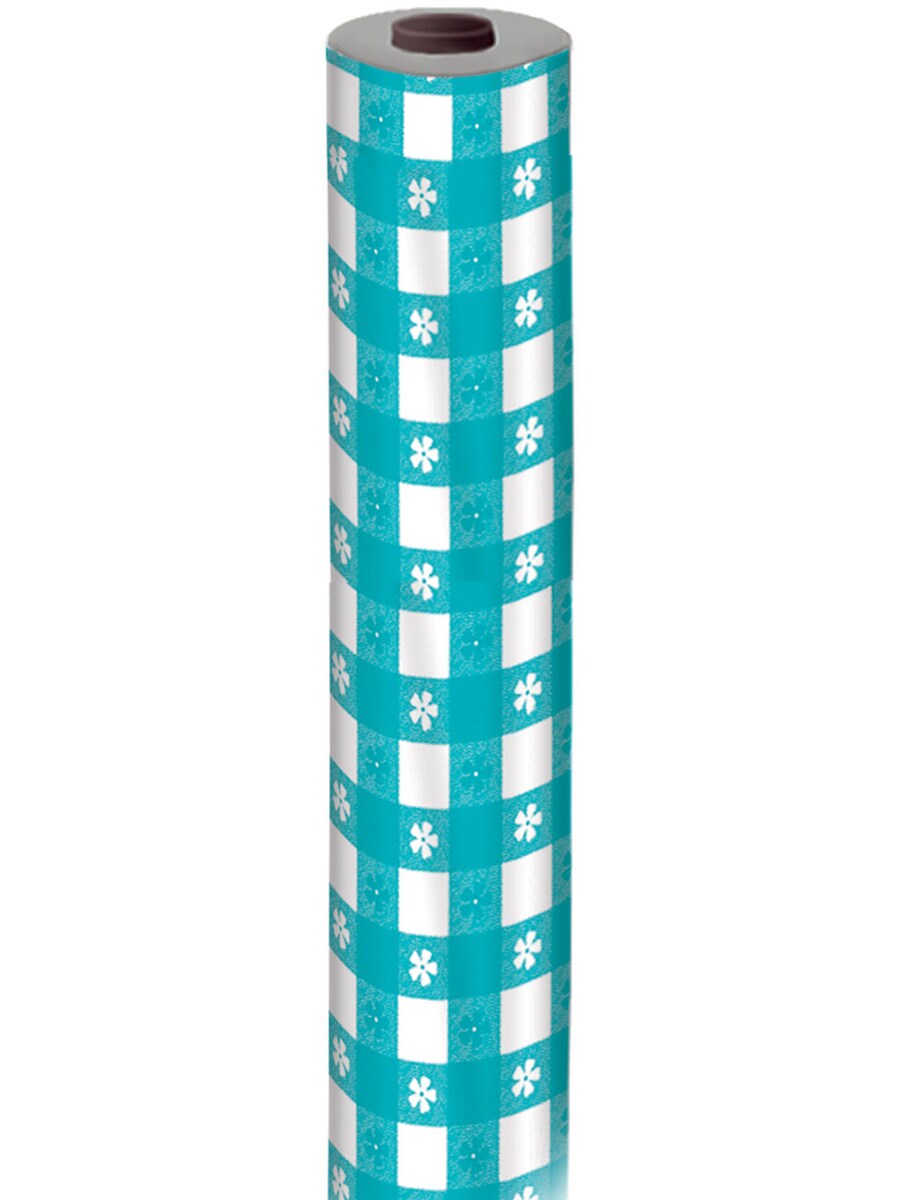 Teal Classic Picnic Gingham Plastic Roll Table Cover Party Decoration