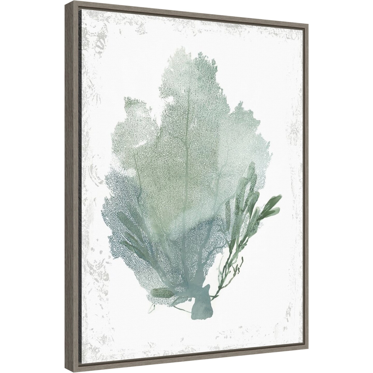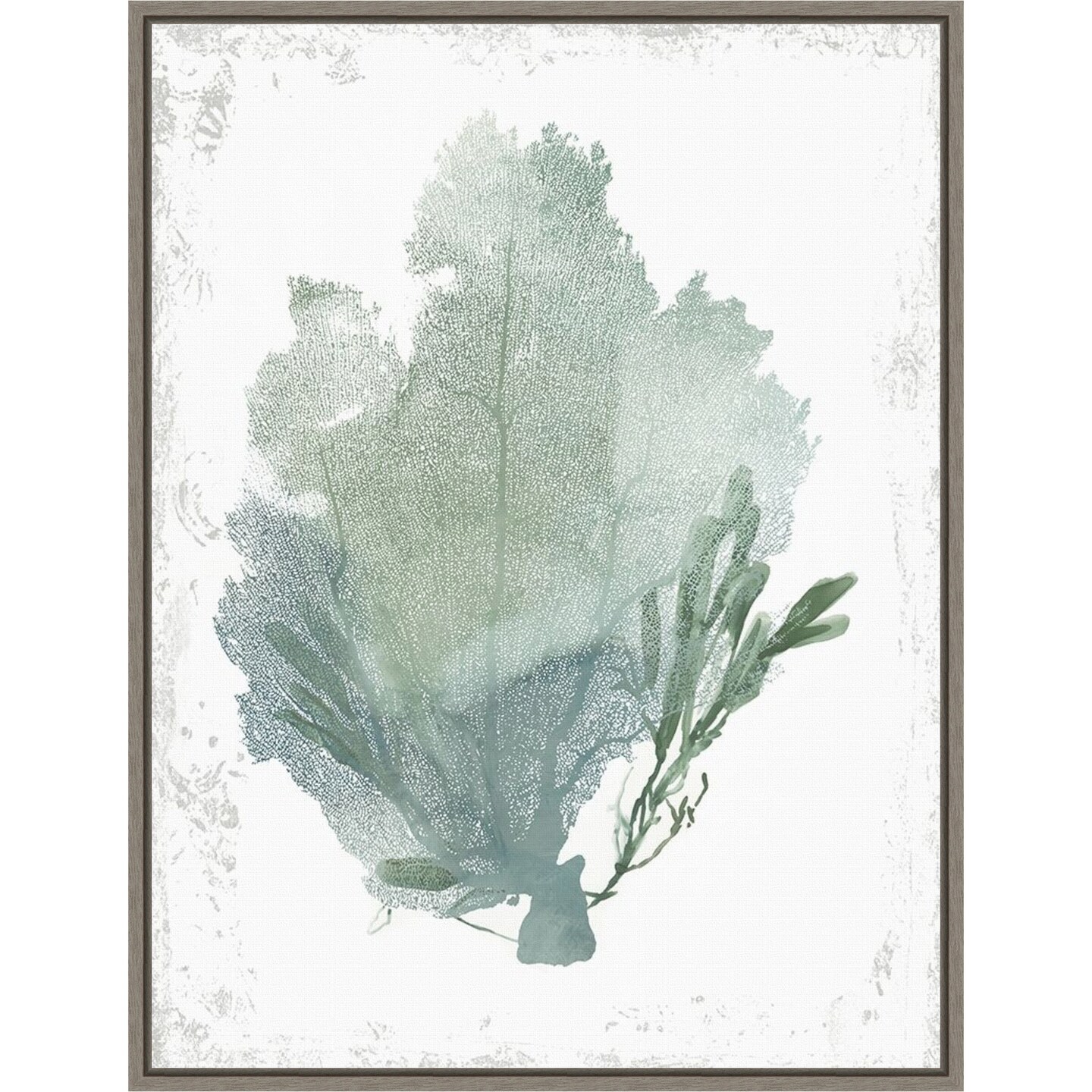 Teal Delicate Coral I by Aimee Wilson 18-in. W x 24-in. H. Canvas Wall Art Print Framed in Grey