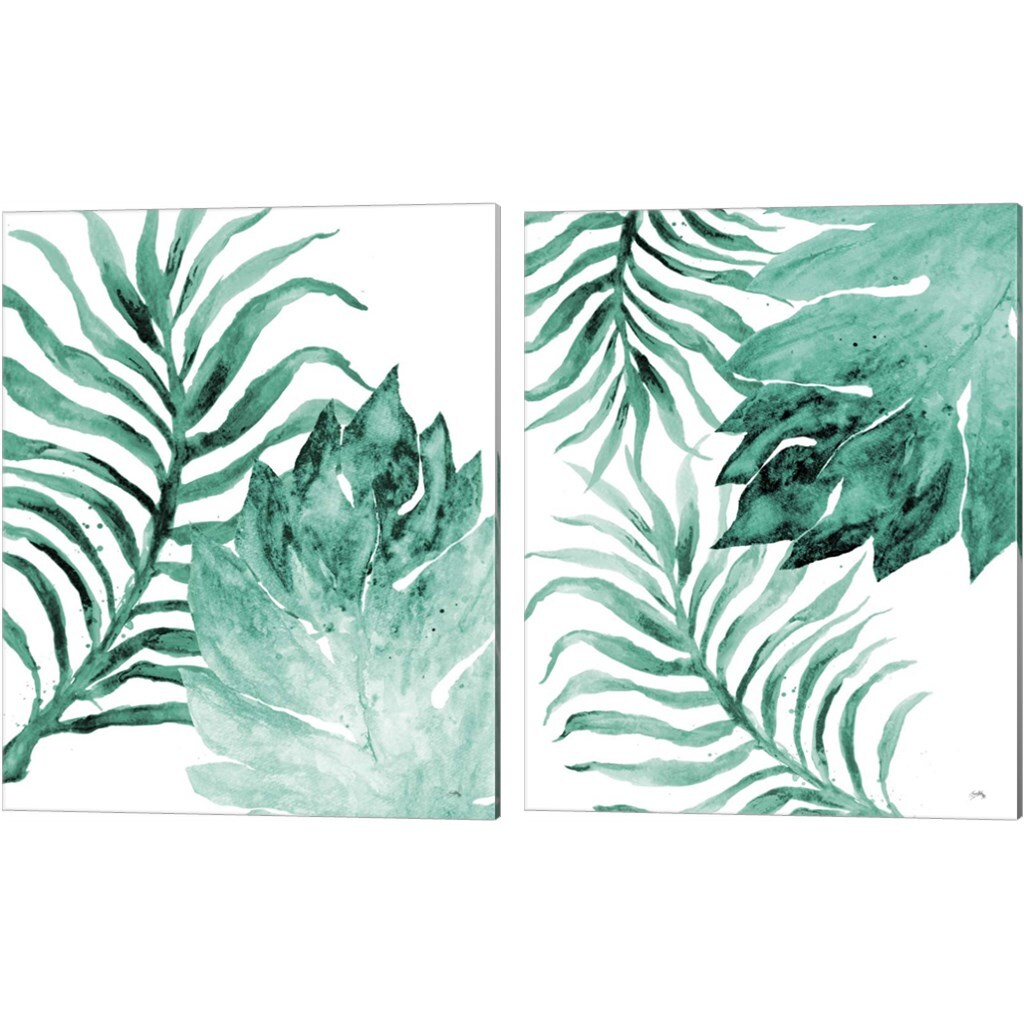 Teal Fern and Leaf by Elizabeth Medley 12" x 15" Canvas Wall Art (Set of 2)