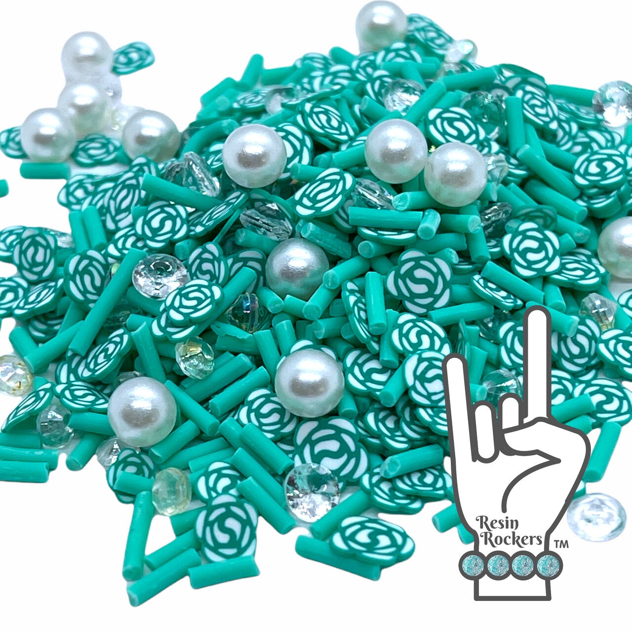 Teal Pearl Floral and Jewel Mix Shaker Filler Variety Mini Inclusions for Resin Art