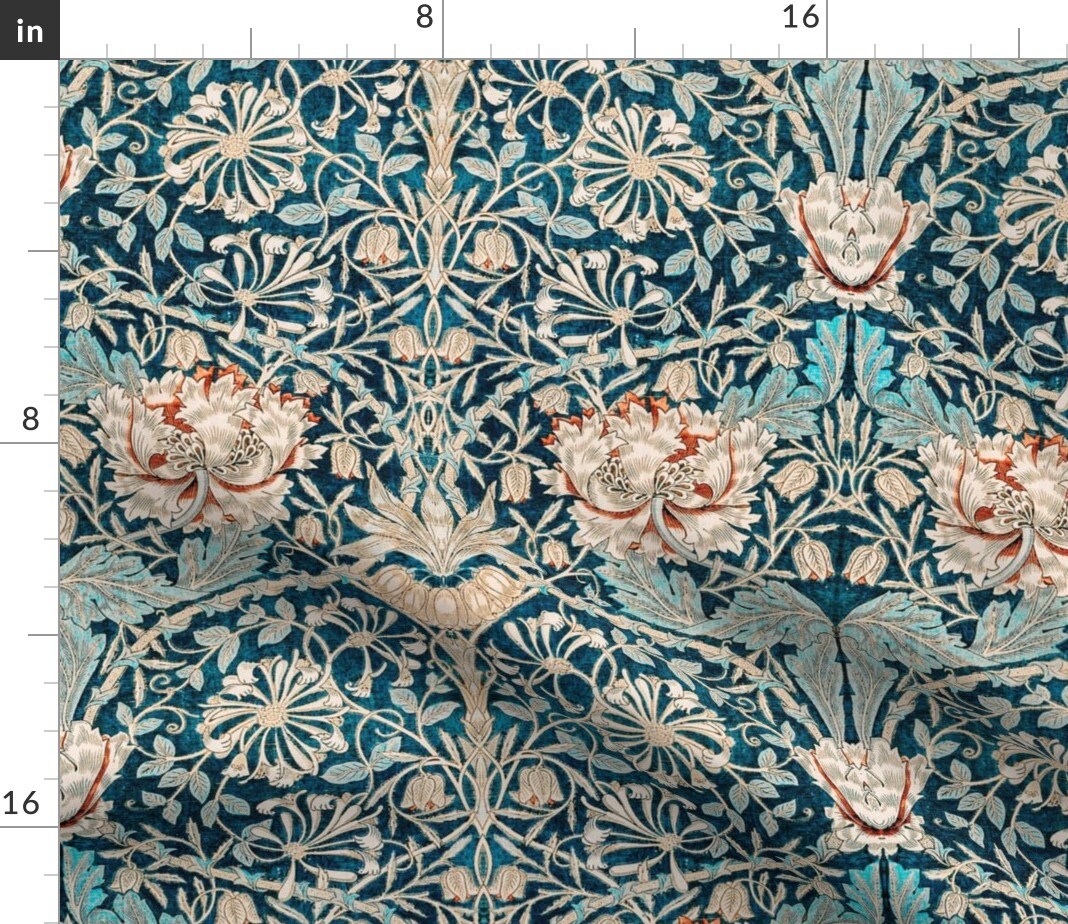 Teal Victorian William Morris Antique Vintage Historical Timeless Classic Traditional Large Scale Custom Printed Fabric by Spoonflower Various Fabrics by the Yard or Fat Quarter